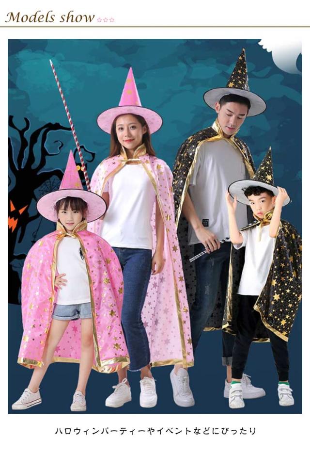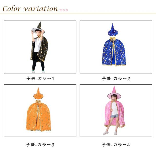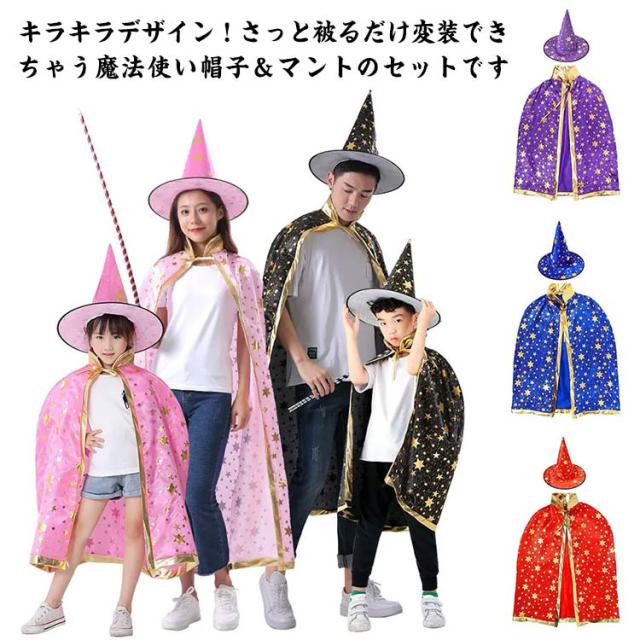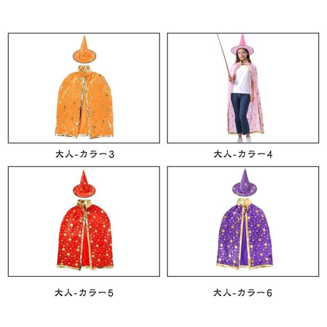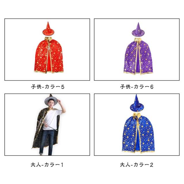 ハロウィン 仮装 衣装 子供 大人 カラー マント 女の子 男の子 魔法使い 魔女 ハロウイン キッズ コスプレ 子供コスチューム パーティー 仮装用マント 星柄 帽子付き 魔法使い キッズ コスチューム ハロウィーン 仮装セット 可愛い 親子お揃い
