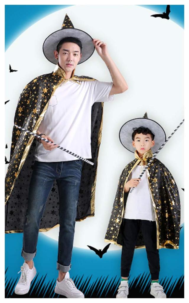 | キラキラデザイン!さっと被るだけ変装できちゃう魔法使い帽子&マントのセットです。 ハロウィンパーティーやイベントなどにぴったり。 親子お揃い、男女兼用フリーサイズで、だれでも気軽にコスプレを楽しめます。 | |