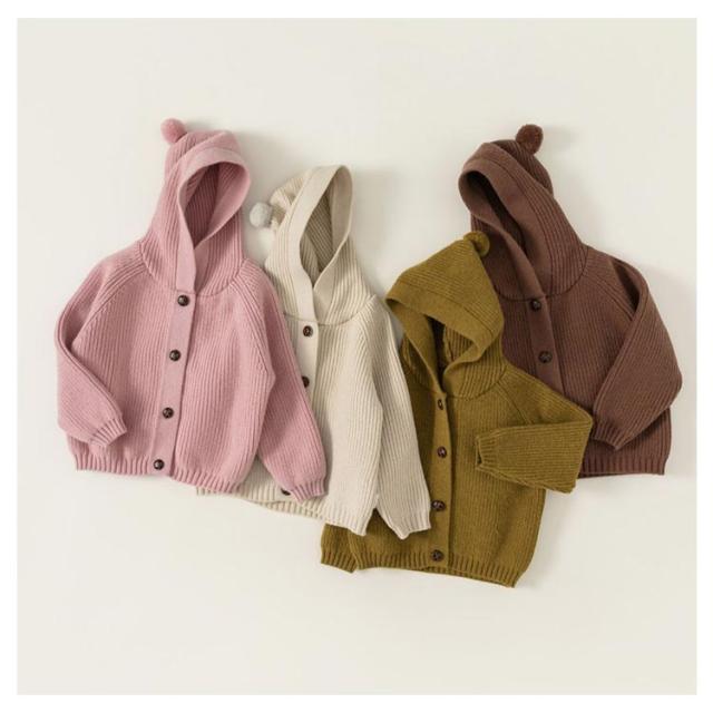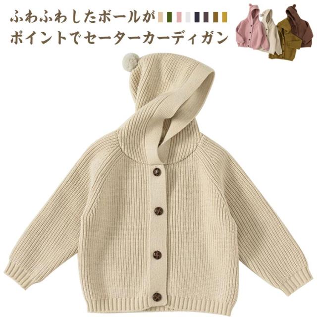 カーディガン キッズ ベビー 綿 コットン レース ニット セーター フード付き 女の子 男の子 赤ちゃん 子供 幼児ベビー ベビー服 子供服 前開き 羽織り アウター お出かけ 長袖 厚手 すみカラー 無地 やわらかい カジュアル おしゃれ 可愛い ふわふわ 秋 冬 暖かい 送料無料