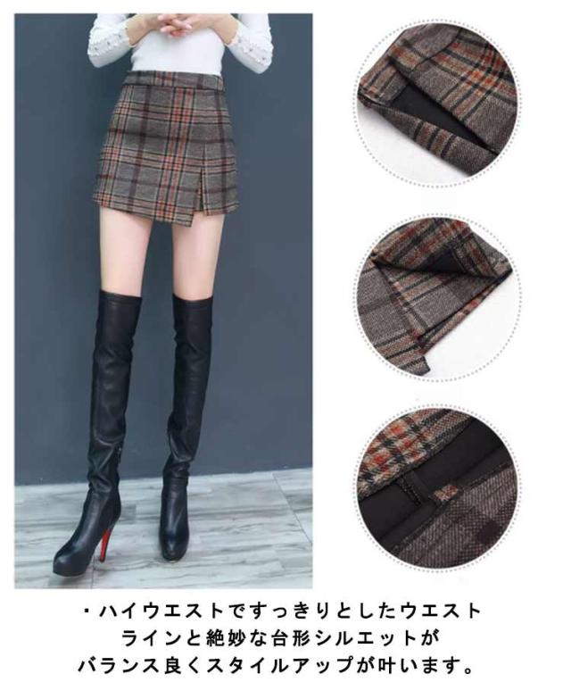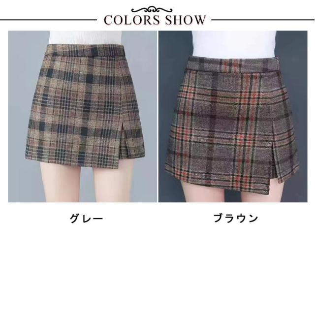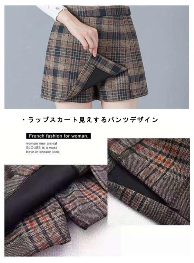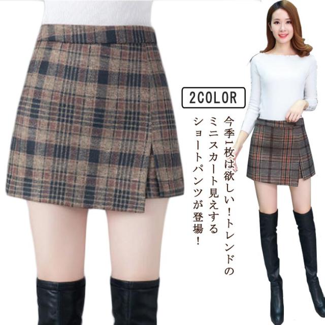 スカートショートパンツ レディース ショートパンツ ボトムス ミニスカート ミニスカ チェック柄 スカパン キュロット ウール調 Aライン ハイウェスト 台形 ショート丈 きれいめ カジュアル 大人 秋 冬