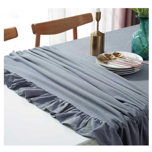 | フリルデザインがお洒落で可愛いテーブルクロス。 綿麻素材ならではの柔らかな手触りながら厚みもあって思ったより高級感があります。 どんなダイニングにも合わせやすいのも特徴。 | |