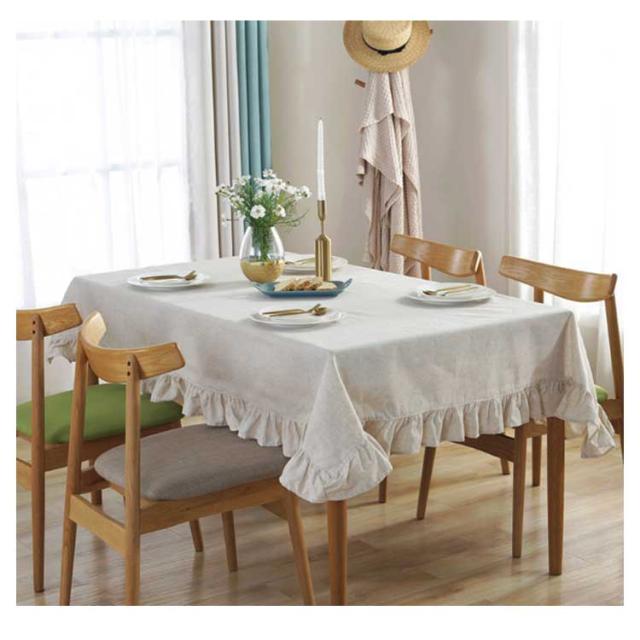 テーブルクロス フリル 綿麻 リネン テーブルマット 北欧 食卓カバー デスクマット 汚れ防止 傷防止 北欧風 おしゃれ 家庭用 業務用 長方形 キッチン ダイニング レストラン ピクニック アウトドア