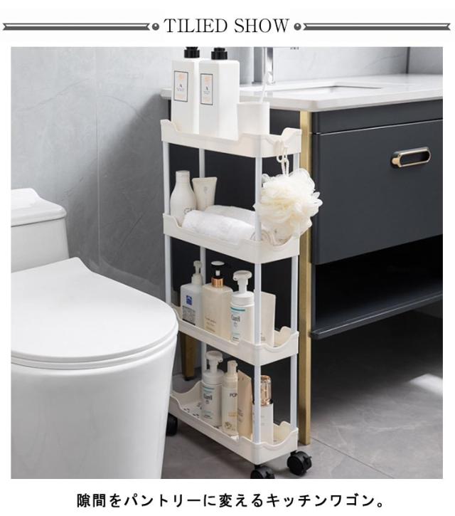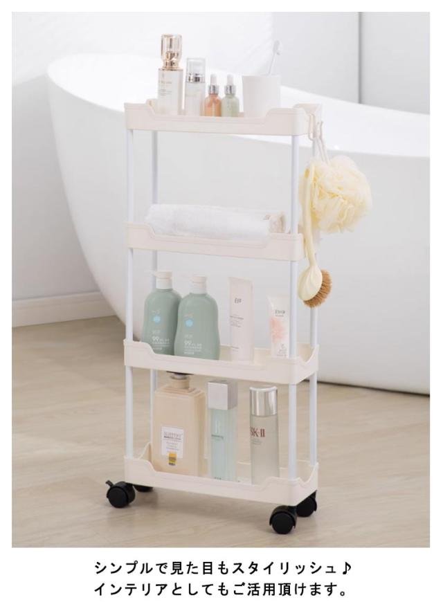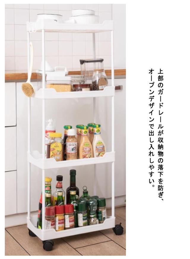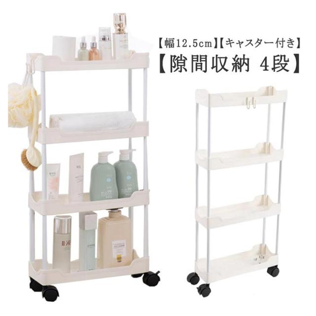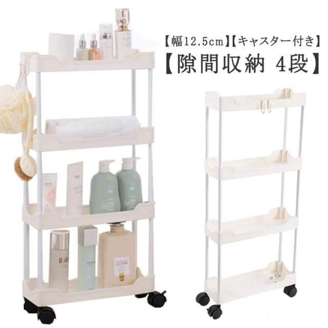 隙間収納 12.5cm 幅 4段 キャスター付き フック付き キッチンワゴン スリム 収納 洗面所 すき間収納 ランドリー ラック 薄型 すき間 キッチン収納 ワゴン 冷蔵庫横 キッチン 玄関 クローゼット 隙間トロリー 北欧 おしゃれ