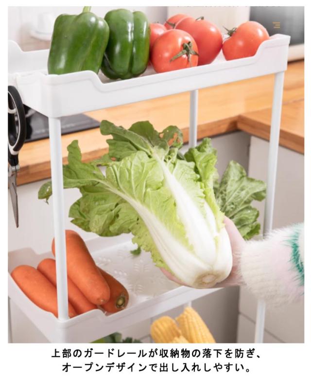 | 【幅12.5cm】 【キャスター付き】 【隙間収納 4段】 隙間をパントリーに変えるキッチンワゴン。 幅12cmに設置できる超スリムサイズで、4段大容量タイプの小分け収納。 上部のガードレールが収納物の落下を防ぎ、オープンデザインで出し入れしやすい。 頑丈とキャスター付きで重い物が載ってもスイスイ移動♪キャスターにもストッパーがついて安心。 シンプルで見た目もスタイリッシュ♪インテリアとしてもご活用頂けます。 | |