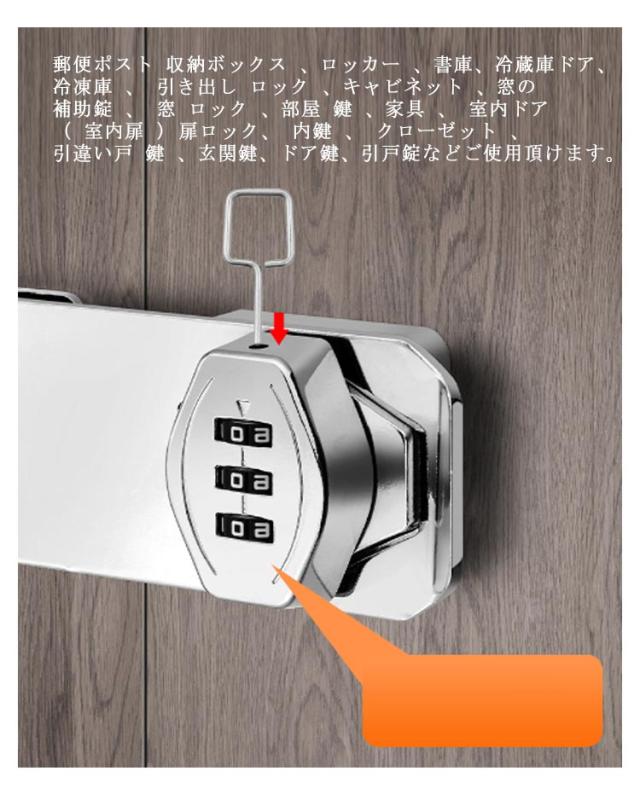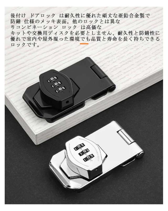 ドアロック 引き戸 鍵 後付け 穴あけ不要 3桁ダイヤル式 補助鍵 鍵 落とし防止 盗難防止 引き出し 鍵キャビネット 亜鉛合金 補助錠 玄関 窓 収納ボックス 書庫 本棚 家具 扉 錠 ロック 鍵 防錆 耐久性 補助ロック 送料無料