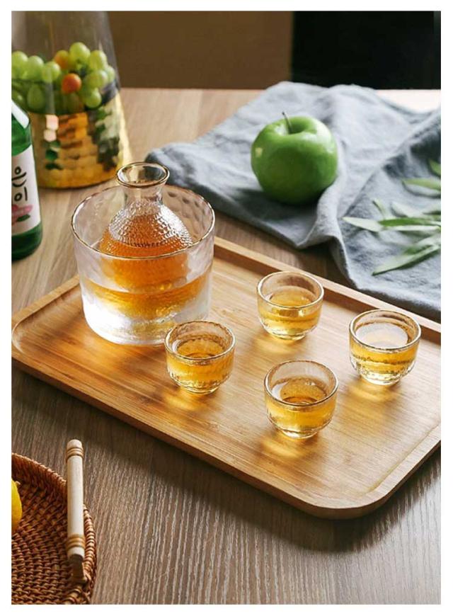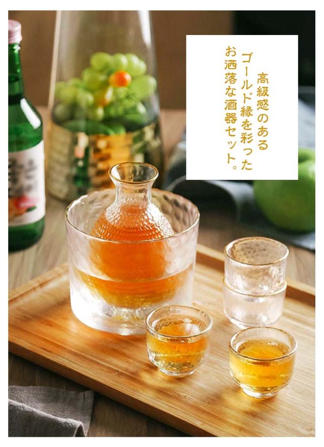 【6点セット】酒器セット 冷酒器 ガラス製 徳利 杯 おちょこ 冷酒グラス 日本酒 熱燗 冷酒 とっくり ぐい呑み おしゃれ シンプル 保温 保冷 盃 上品 高級感 ゴールド 金 プレゼント 贈り物 ギフト 引っ越し お祝い 来客 父の日 母の日 結婚祝い 敬老の日