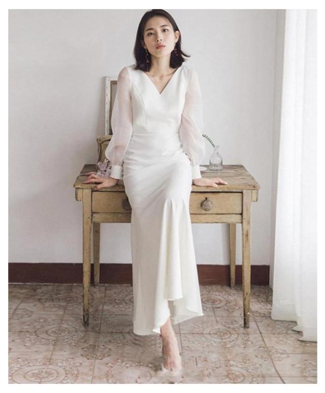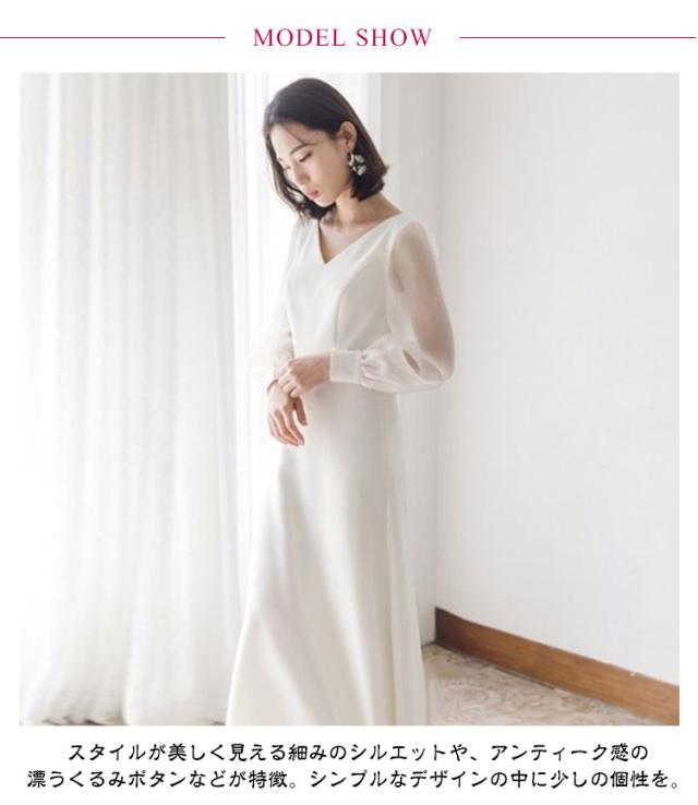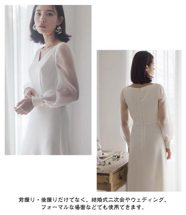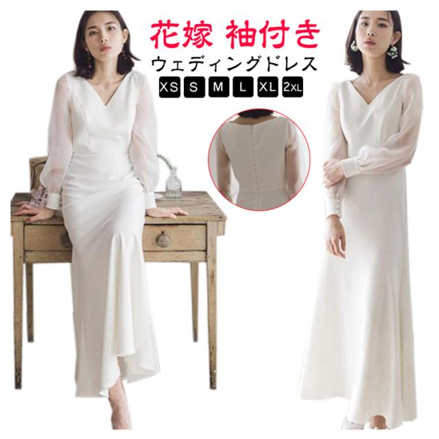ウェディングドレス ウエディングドレス パーティードレス ビーチフォト 前撮り 後撮り フォトウエディング 花嫁ドレス 長袖 シンプル ナチュラル 撮影 海外挙式 披露宴 結婚式 演奏会 発表会 カジュアル 二次会 Vネック 白 ドレス ウェディング フォト婚 送料無料