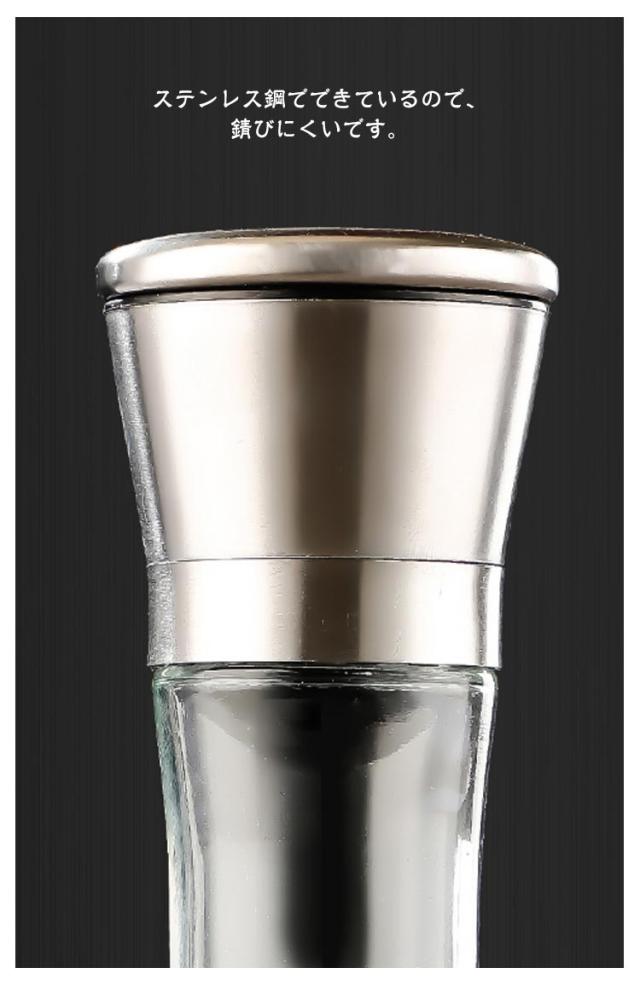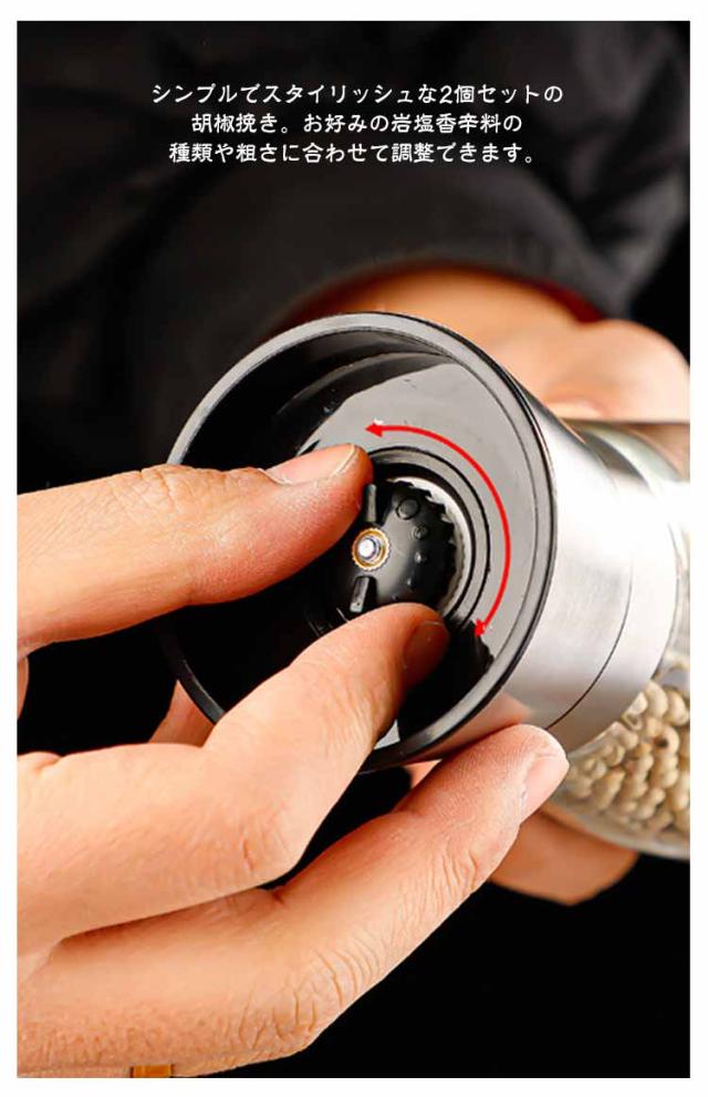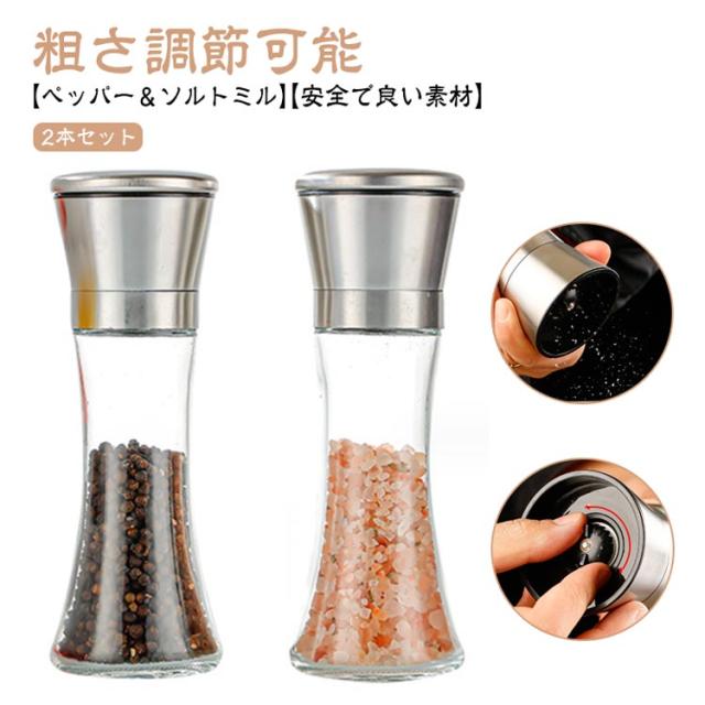 【2本セット】ペッパーミル 手動 胡椒ミル 岩塩ミル 胡椒料理用品 胡椒製作器 粗さ調節可能 ソルトミル 胡椒挽き こしょう挽き スパイスミル シンプル 胡椒 ミル ペッパー ソルト ミル 調理用品 調理道具 ガラス ステンレス おしゃれ コショウ 岩塩 塩 黒胡椒