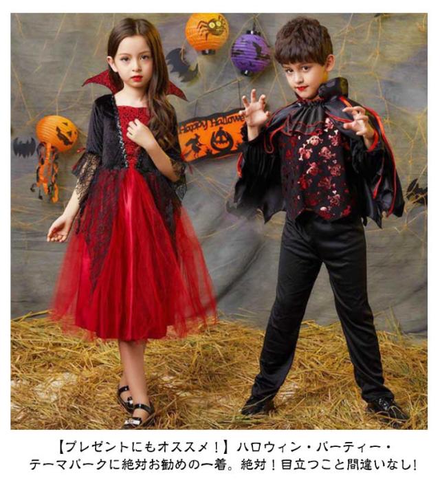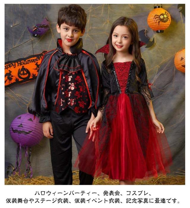 ハロウィン 衣装 コスプレ 子供 バンパイア コスチューム 吸血鬼 ゾンビ 悪魔 仮装 女の子 男の子 ワンピース ケープ ドレス 鬼の花嫁 魔女 ヴァンパイア 髑髏 Halloween 変装 ハロウィーン マント 小悪魔 キッズ コスプレ衣装 演出服 頭飾り付き ジュニア
