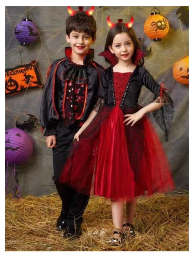 | 【110〜170cm】【女の子/男の子】 簡単に変身完成!ハロウィンの雰囲気がUP!!! 【使用場合】ハロウィーンパーティー、発表会、コスプレ、仮装舞台やステージ衣装、仮装イベント衣装、記念写真に最適です。 【吸血鬼なりきり】とても個性的なデザイン、明るく鮮やかな色はみんなの目を引きます。とっても可愛いコスチューム衣装です! 【プレゼントにもオススメ!】ハロウィン・パーティー・テーマパークに絶対お勧めの一着。絶対!目立つこと間違いなし! | |
