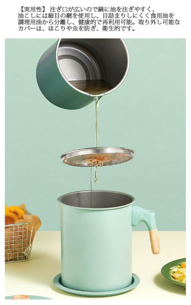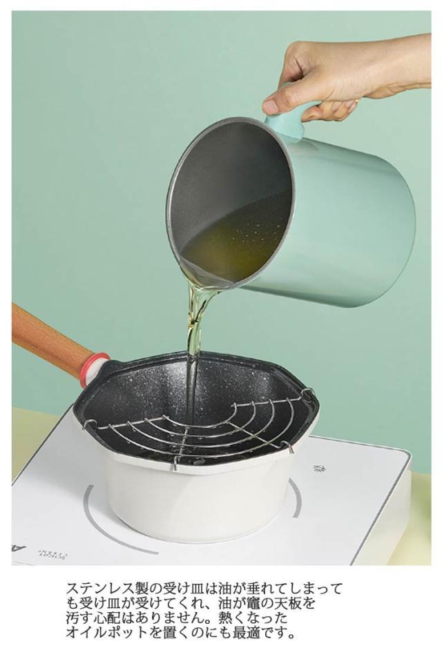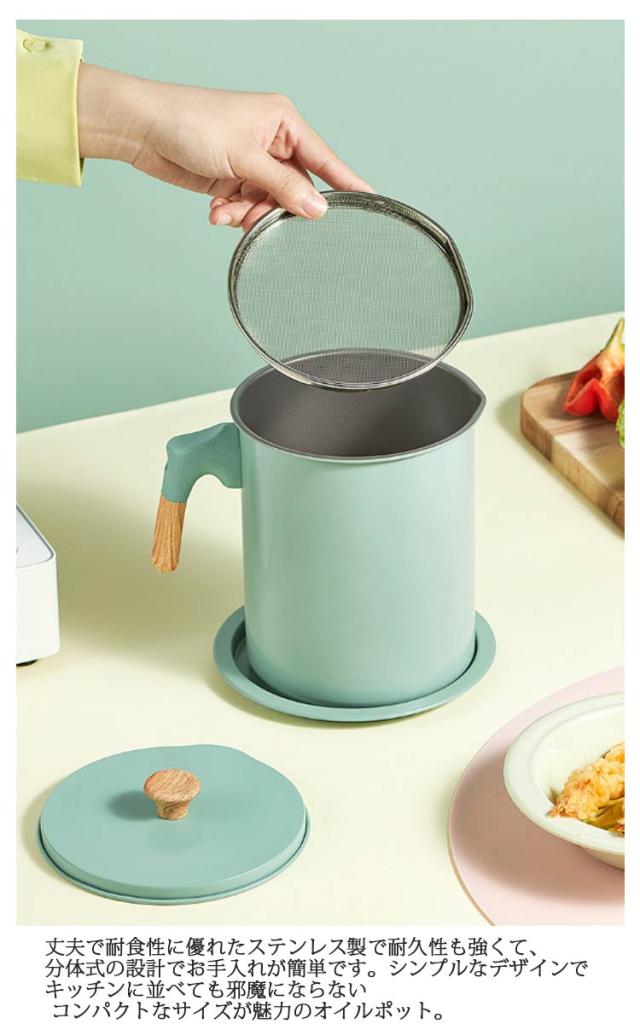| 【高品質】オイルポット本体と油こし網がステンレス製で酸化防止、腐食防止、防錆、滴下防止、衛生的に油を保存してくれ、劣化にも強いのが魅力です。丈夫で耐食性に優れたステンレス製で耐久性も強くて、分体式の設計でお手入れが簡単です。シンプルなデザインでキッチンに並べても邪魔にならない コンパクトなサイズが魅力のオイルポット。 【安全】滑らかな取っ手はオイルポット本体との距離を取って直接接触の回避ができ、火傷しにくい、簡単に握ることができます。ステンレス製の受け皿は油が垂れてしまっても受け皿が受けてくれ、油が竈の天板を汚す心配はありません。熱くなったオイルポットを置くのにも最適です。 【実用性】 注ぎ口が広いので鍋に油を注ぎやすく、油こしには細目の網を使用し、目詰まりしにくく食用油を調理用油から分離し、健康的で再利用可能。取り外し可能なカバーは、ほこりや虫を防ぎ、衛生的です。 | |