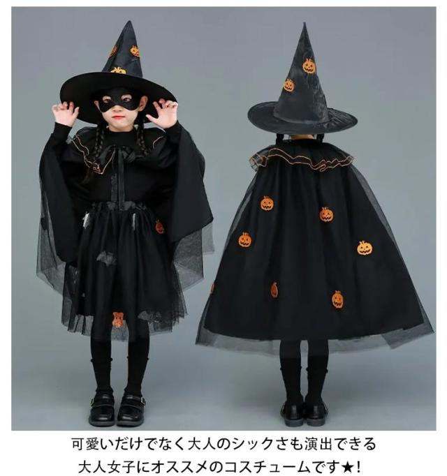 ハロウィーン コスプレ衣装 コスチューム 女の子 クリスマス 子供用 魔女 マント付き 帽子付き スカート付き アイマスク付き 仮装 キッズ服 変装 文化祭 学園祭 子供用 パーティー 衣装 ダンス衣装 コスプレ ハロウィン 万聖節