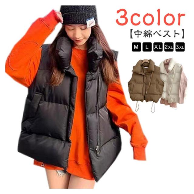 | 【中綿ベスト】【M/L/XL/2XL/3XL】【3color】 ハイネックで首元まで隠れるあったかアイテム かっこいい、かわいいも叶う着回し抜群 ボリューミーなシルエットでかわいいです 裾のコードを絞るだけでシルエット変化が自在です カーゴパンツなどトレンドアイテムとのコーデにも相性Good! | |