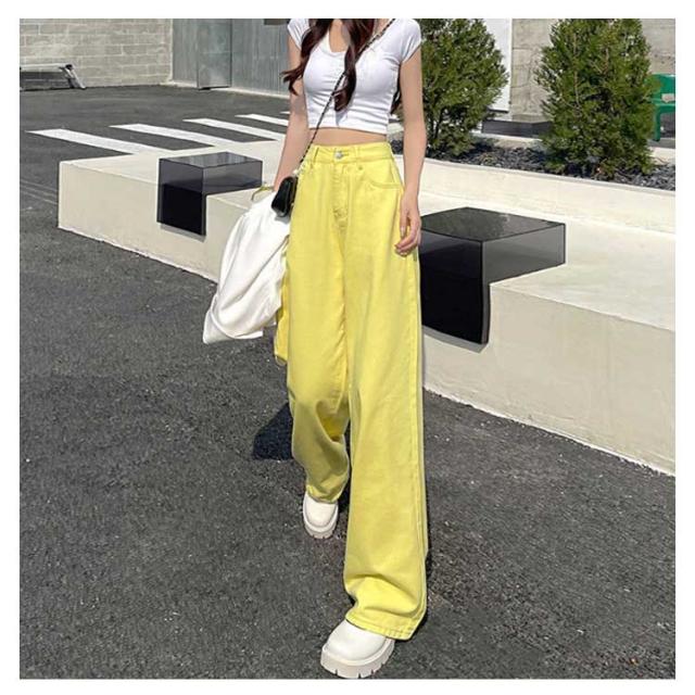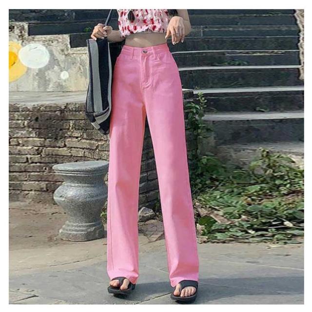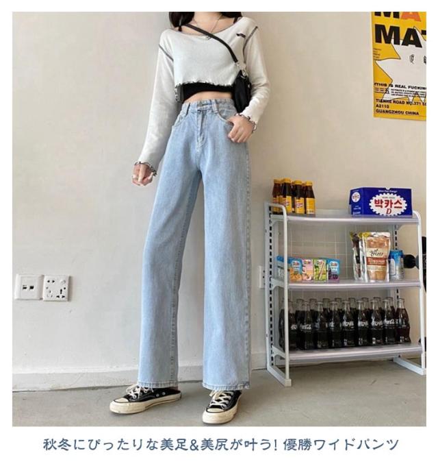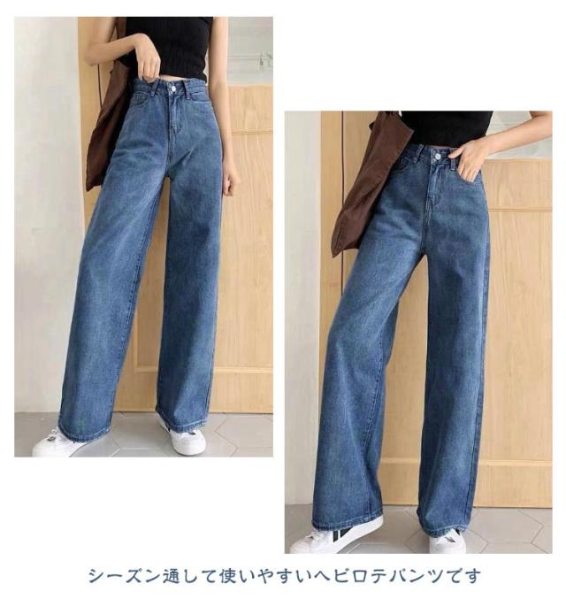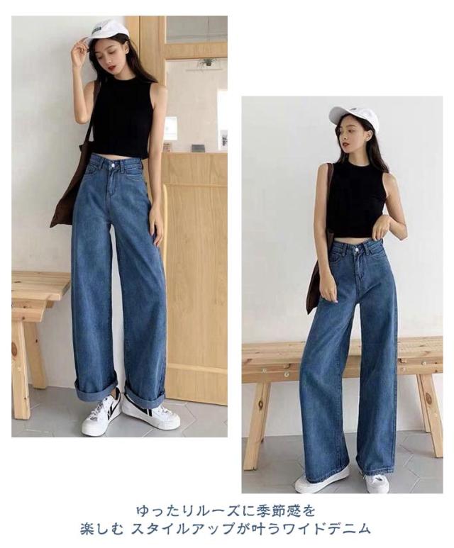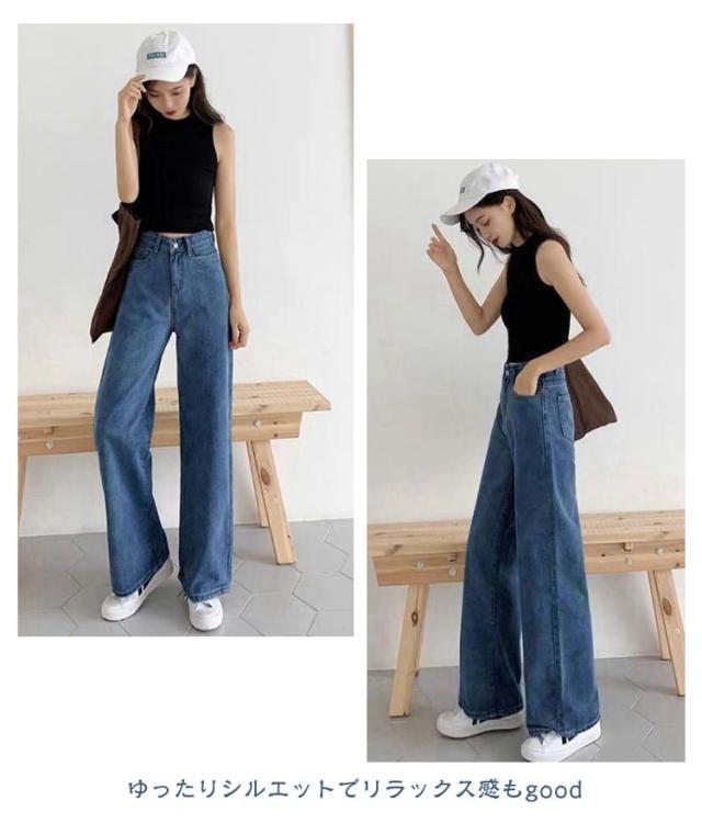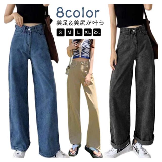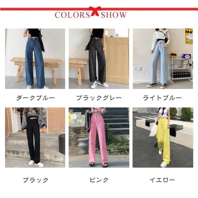 ワイドパンツ レディース デニムパンツ ハイウエスト ボトムス 韓国ファッション ワイド ジーンズ おしゃれ 春 夏 秋 冬 ズボン パンツ ロング 大きいサイズ ブラック 黒 ピンク デニム ストレート 美脚 コーデ 着痩せ ブルー