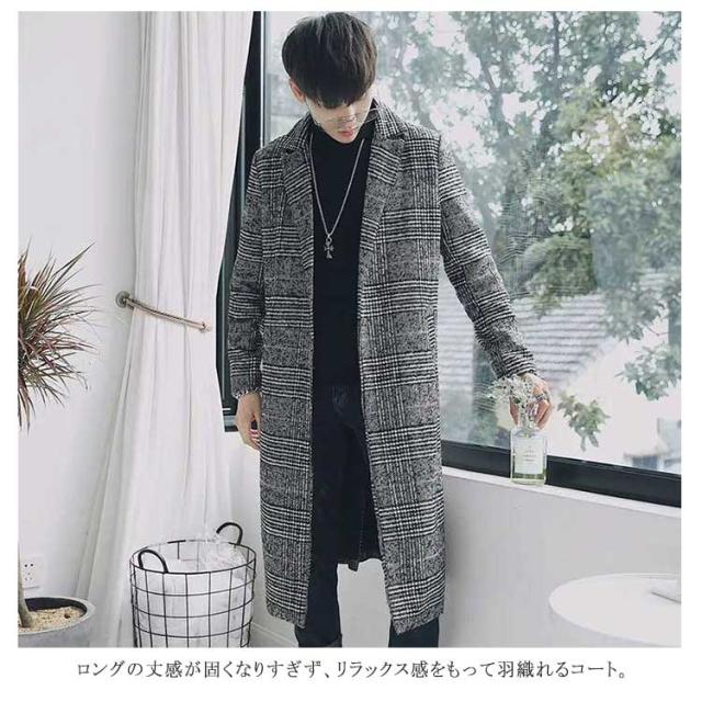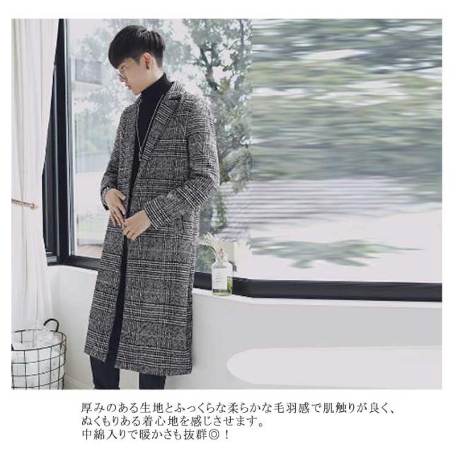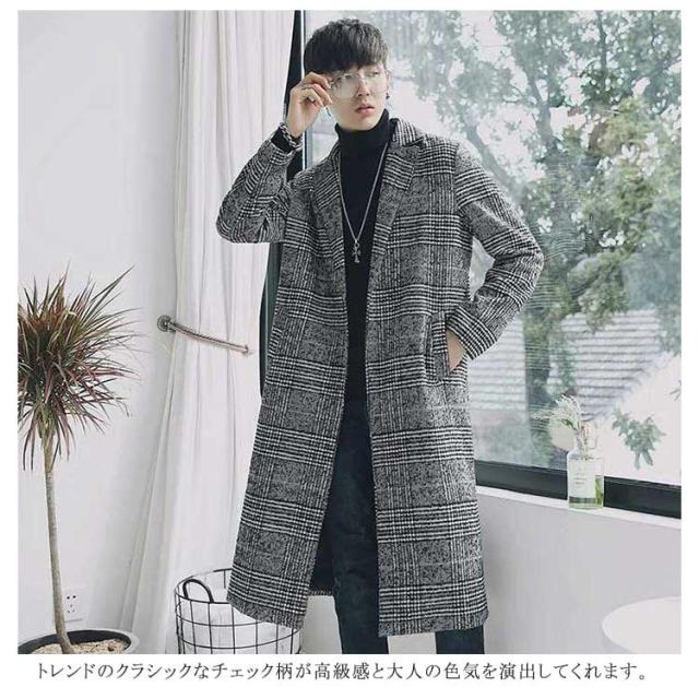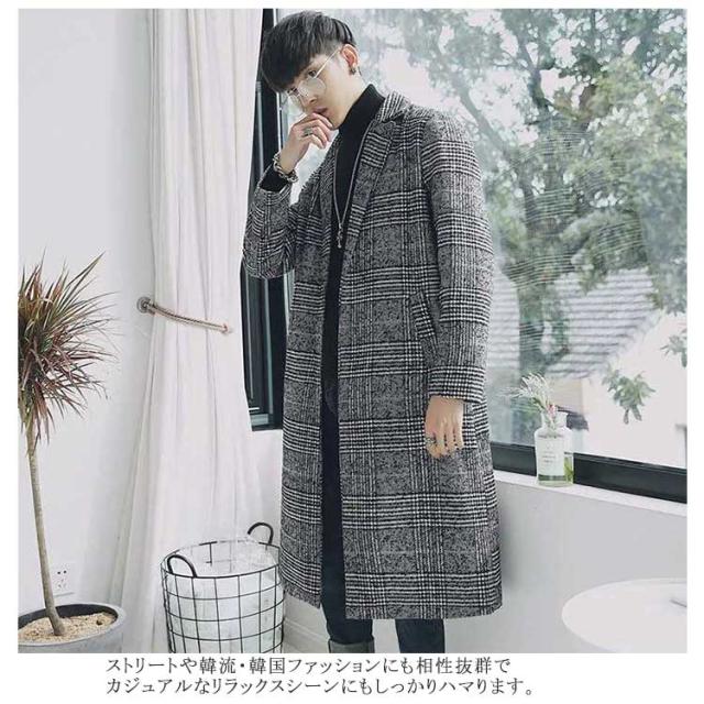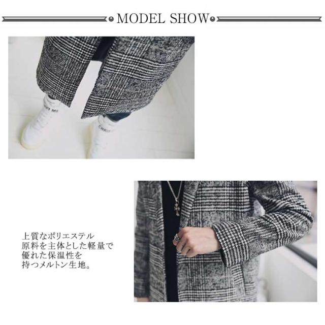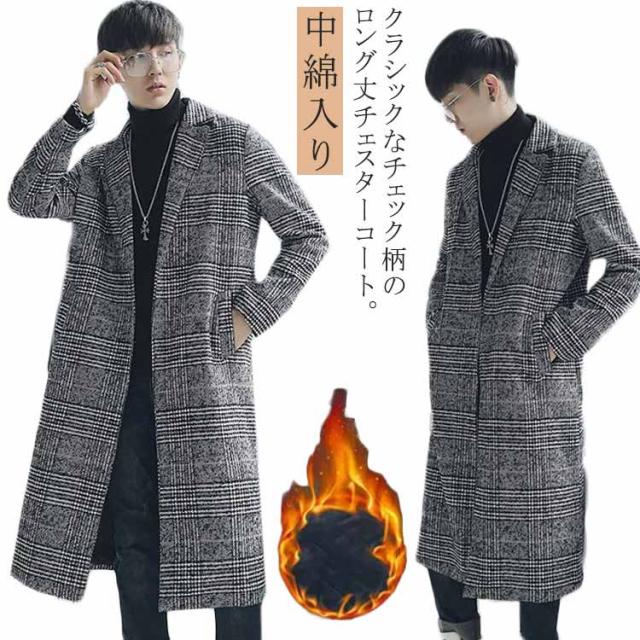 コート メンズ チェスターコート ロング チェック柄 メルトン スリム ロングコート 一つボタン 秋 冬 メルトンコート キルティング入り 中綿入り 厚手 暖かい 防寒 保温 通勤 通学 カジュアル 韓国 ファッション ストリート 大きいサイズ 【送無】