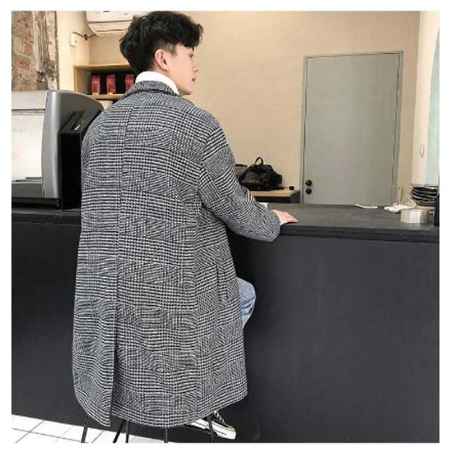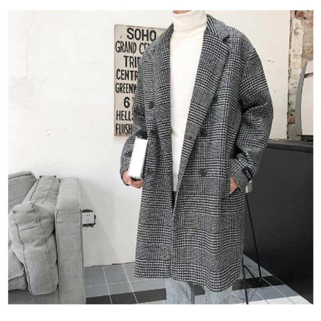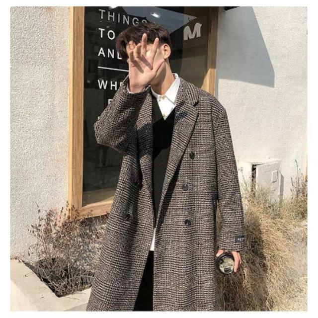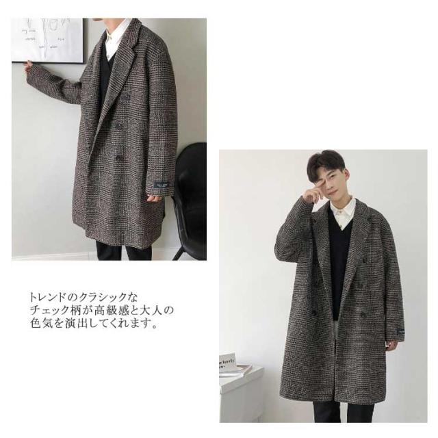 チェスターコート メンズ コート チェック柄 ミドル丈 メルトン ロングコート ダブル オーバーサイズ 秋 冬 メルトンコート 厚手 暖かい 防寒 保温 通勤 通学 カジュアル 韓国 ファッション ストリート 大きいサイズ 黒 ブラック ブラウン 【送無】