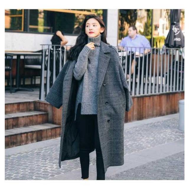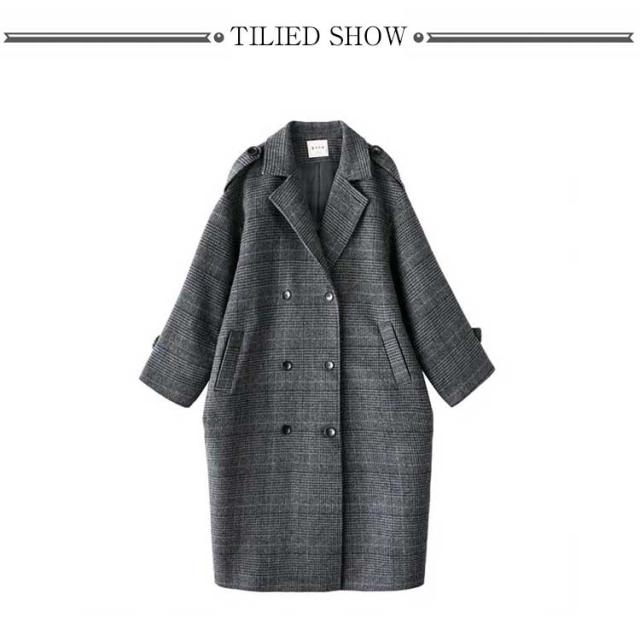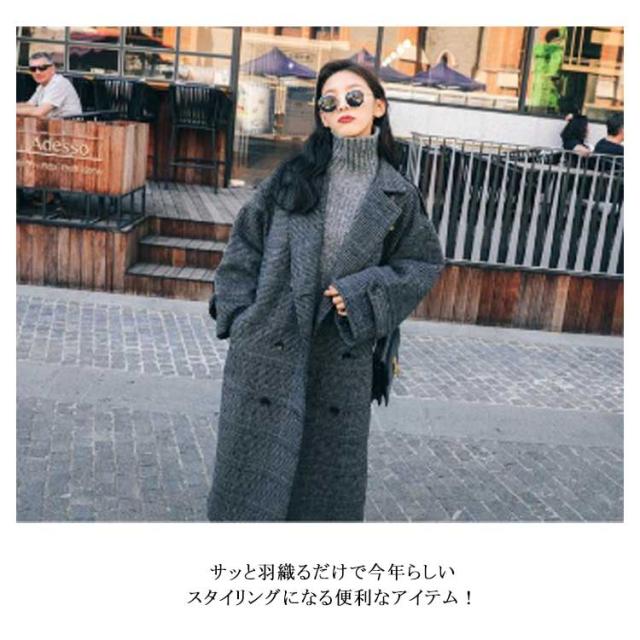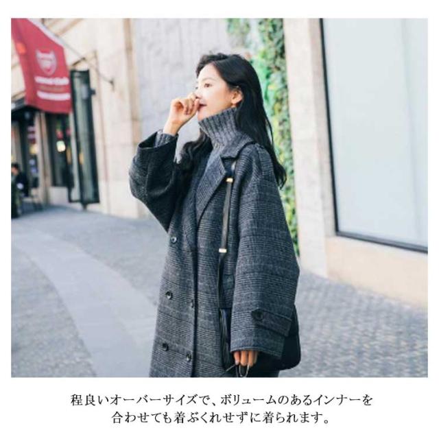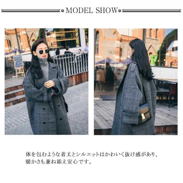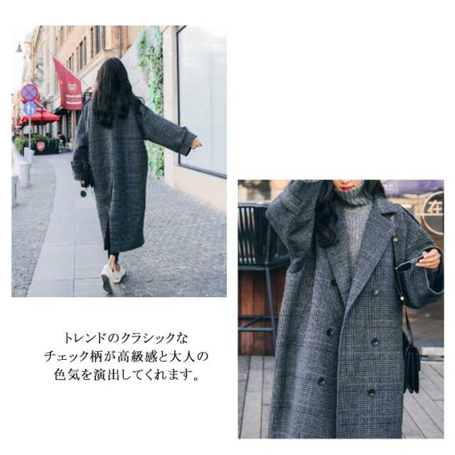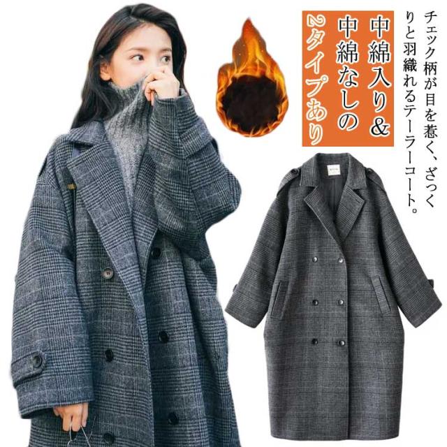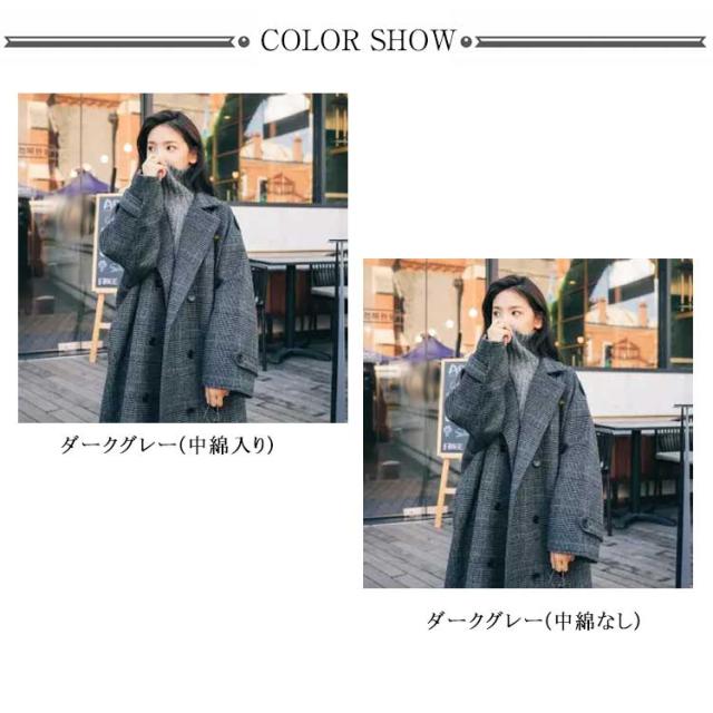 チェスターコート レディース チェック柄 コート ロング 秋冬 厚手 ロングコート オーバーサイズ テーラーコート メルトン 裏地付き 中綿入り あたっか 防寒 保温 通勤 通学 大人 カジュアル 韓国 大きいサイズ ダークグレー おしゃれ 【送無】