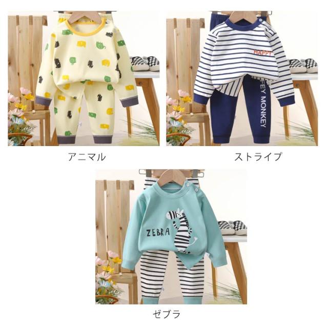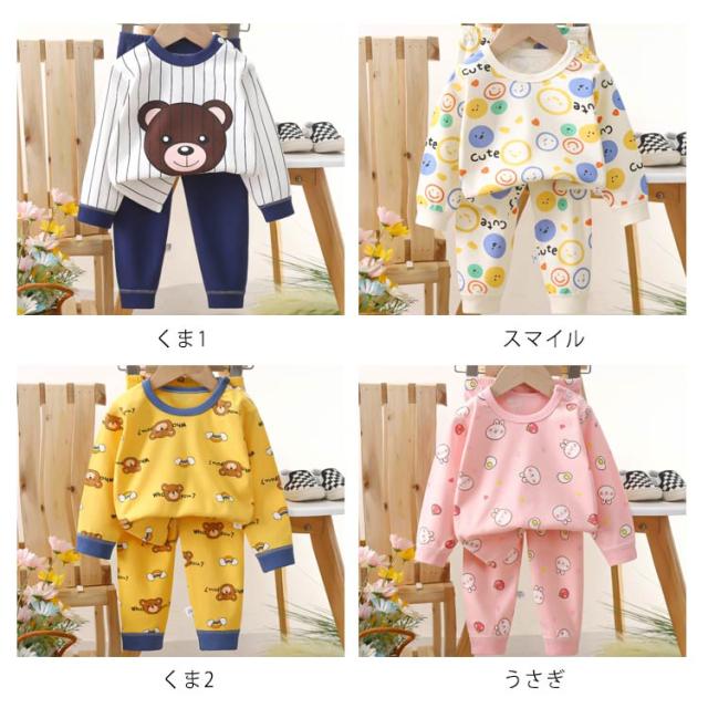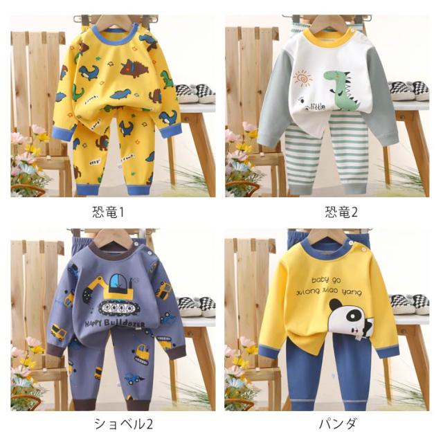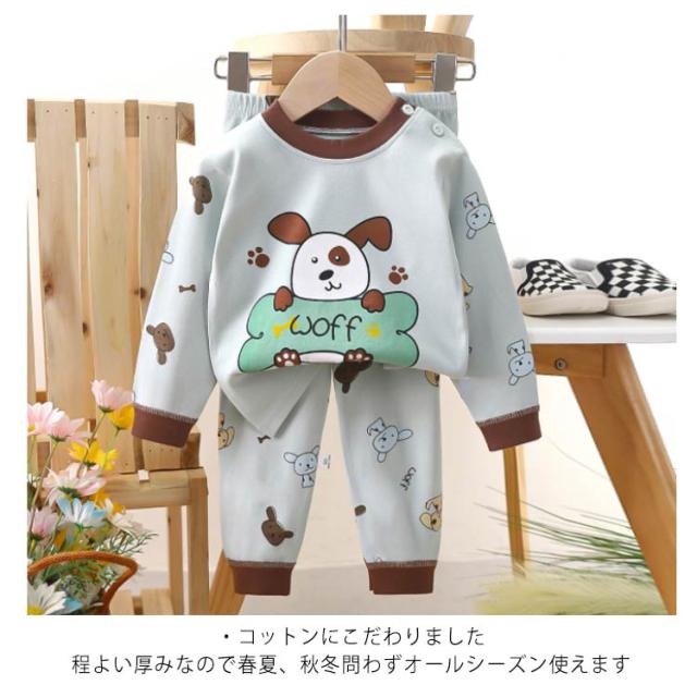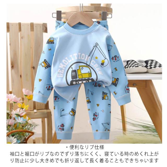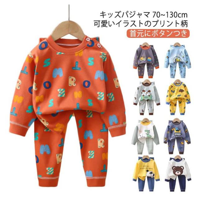 | キッズパジャマ 70~130cm ・可愛いイラストのプリント柄 毎日の就寝時に!長袖 長ズボンがセットアップになった可愛いパジャマ登場! 寝巻き、部屋着からお泊り保育まで。兄弟お揃いにもできる豊富なサイズ展開♪ ・便利なリブ仕様 袖口と裾口がリブなのでずり落ちにくく、寝ている時のめくれ上がり防止に 少し大きめでも折り返して長く着ることもできちゃいます ・コットンにこだわりました 程よい厚みなので春夏、秋冬問わずオールシーズン使えます ・首元にボタンつき トップスの首元にはスナップボタンつき。かぶりのクルーネックなので着脱もスムーズです | |