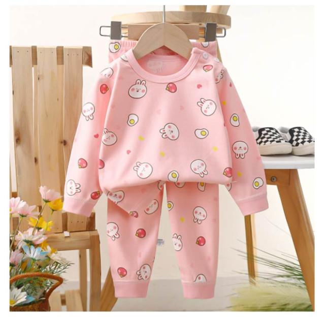 パジャマ キッズ ベビー 子供 長袖 男の子 女の子 おしゃれ かわいい 綿 15柄 コットン 韓国 ルームウェア 子供服 上下セット 春 夏 秋 冬 恐竜 くま うさぎ 車 ピンク(110 120 130から肩紐を付かなし