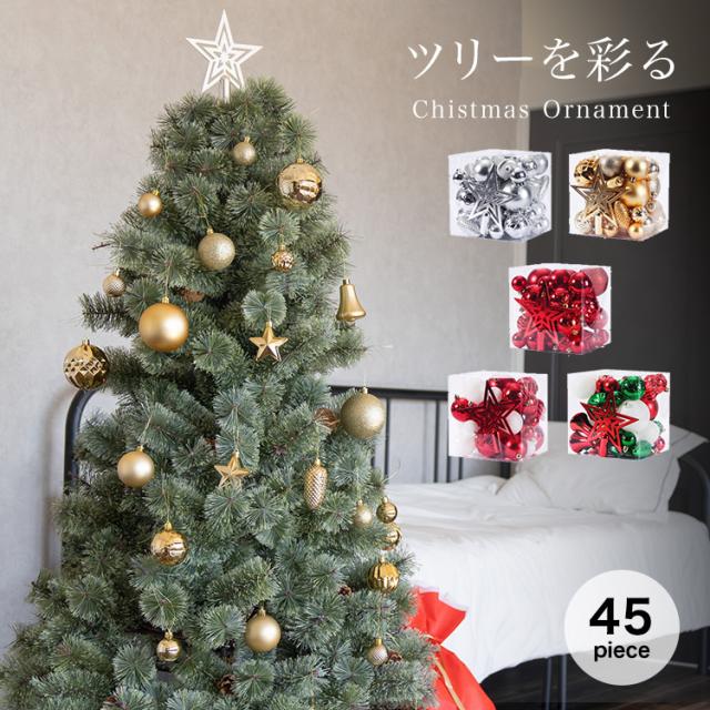 | 大容量 豪華 オーナメントセット 45個入 クリスマス 飾り ボール クリスマスツリー 北欧 おしゃれ オーナメント 赤 緑 金 銀 白 セット ミックス ツリートップ フィニアル |