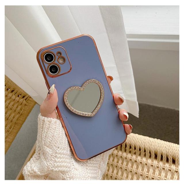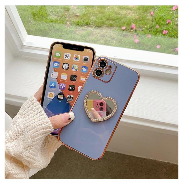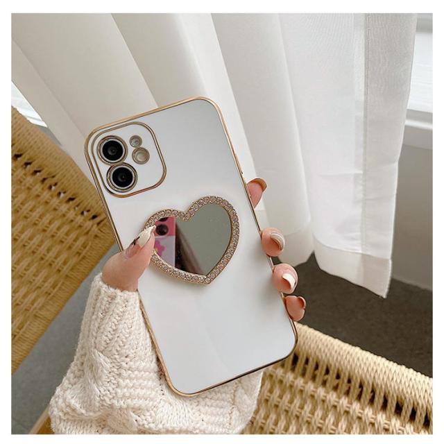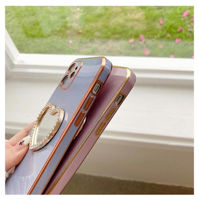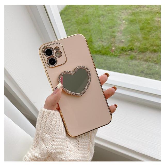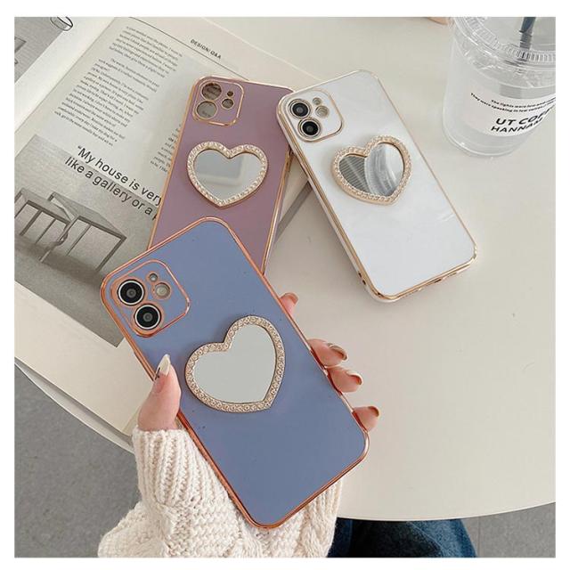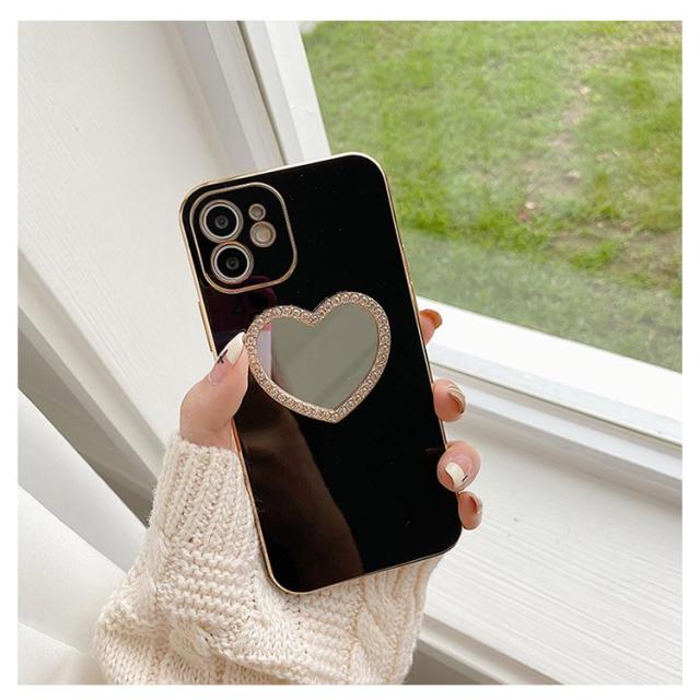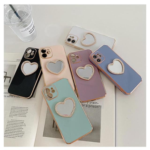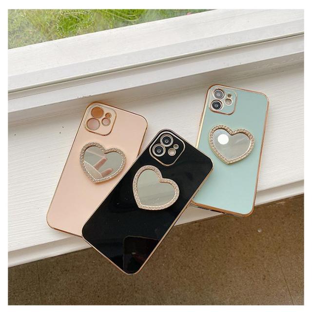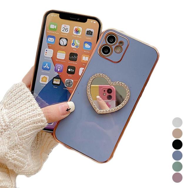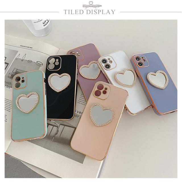 iphone15 14 ケース かわいい 韓国 ハート 鏡 ミラー付き ラインストーン きらきら キラキラ iphone15pro ケース アイフォン15ケース iphone14 ケース iphone13 12 mini iphoneケース iphone11 pro max ケース TPU クリア ミラー 鏡 インスタ映え