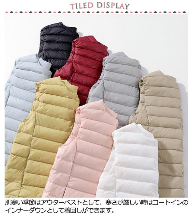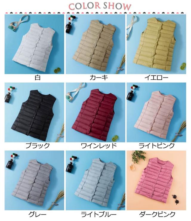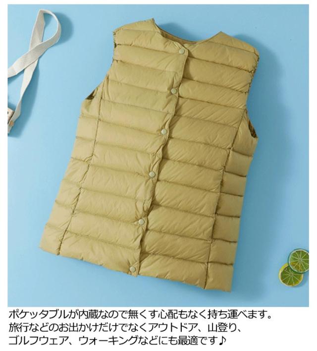 軽量 ダウンベスト レディース ダウン ベスト ライトダウン インナー ンナーダウンベスト 薄手 前開き ノーカラージャケット コート 秋 冬 防寒 暖かい ノーカラー ルームウェア おしゃれ 40代 20代 30代 M/XL/2XL/3XL