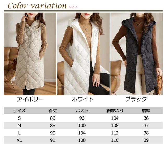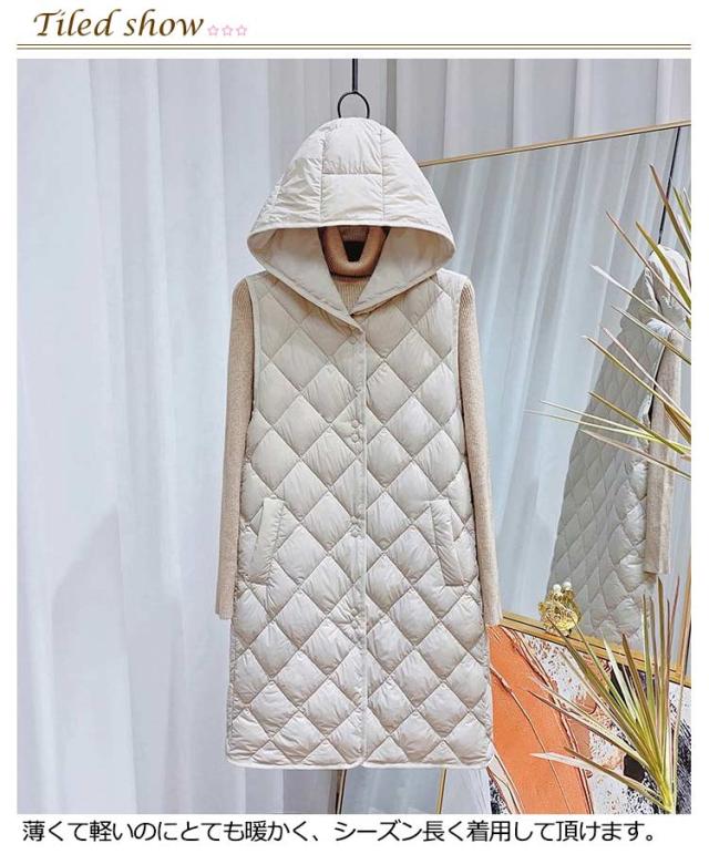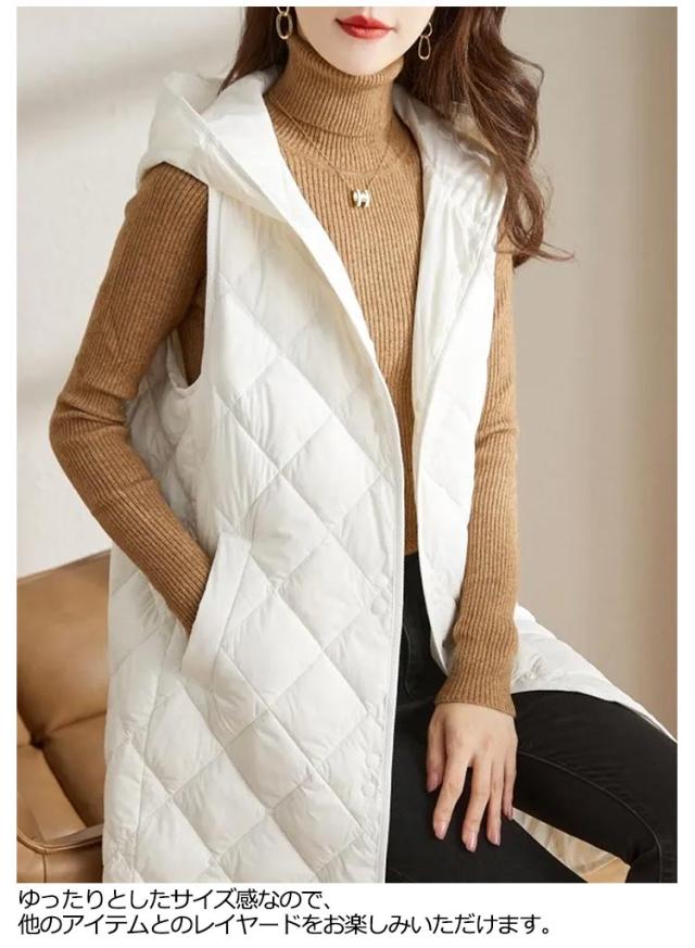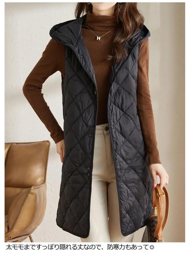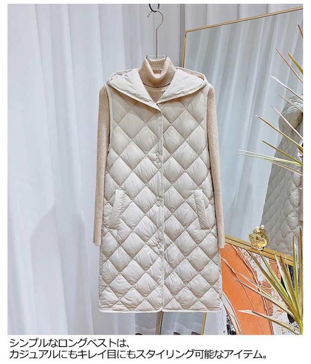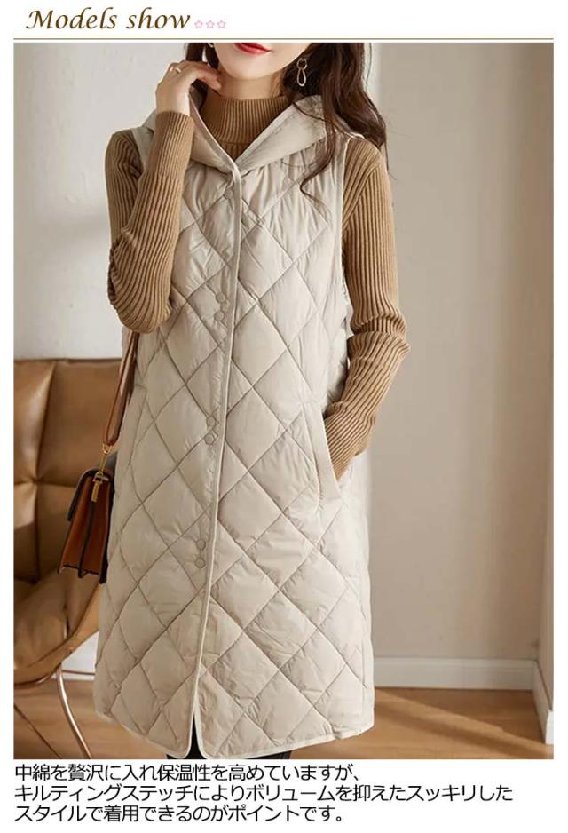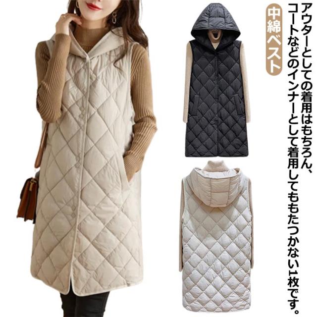 キルティング ベスト レディース 中綿ベスト キルティングコート ロング 中綿コート フード付き キルト 中綿 インナーベスト ライナー ベスト ダウン風 秋 冬 アウター トップス 大人 カジュアル あたっか 防寒 薄手 軽量 無地 30代 40代 50代 【送無】