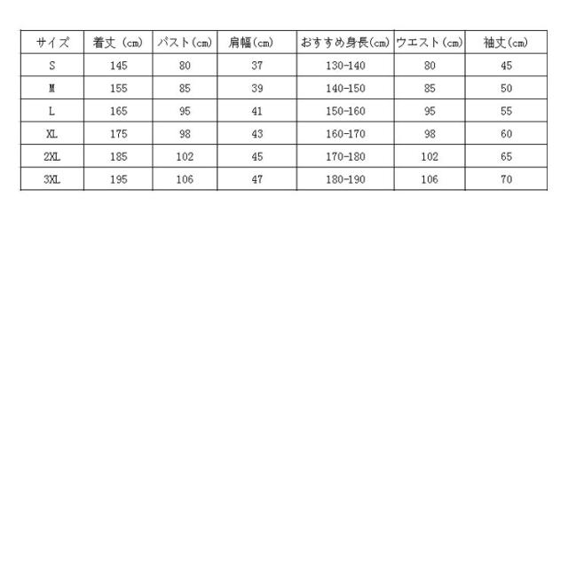 | サイズ | S M L XL 2XL 3XL |