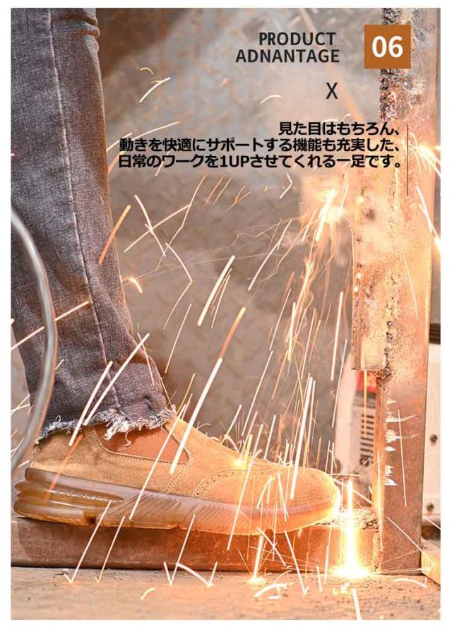 | ・仕事でもプライベートでもお洒落に履きこなせる。 ・鋼鉄先芯の頼もしい安全靴が登場! ・つま先には安全性の高い鋼製先芯入り ・グリップ性、屈曲性に配慮したアウターソール。 ・耐久性に優れるゴム底 ・見た目はもちろん、動きを快適にサポートする機能も充実した、日常のワークを1UPさせてくれる一足です。 | |
