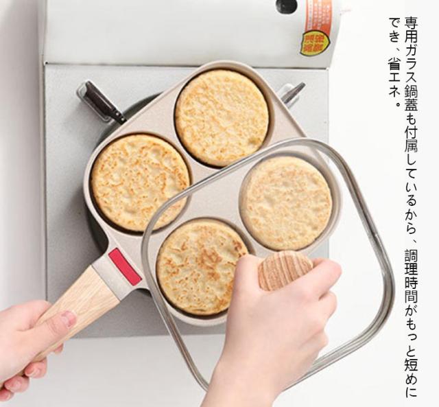 目玉焼き フライパン 4点セット 4つ穴フライパン 4つ穴円形フライパン IH対応 仕切り付き 目玉焼きフライパン 卵焼きフライパン くっつかない 洗いやすい ガラス蓋付き 大判焼き器 卵焼き 大判焼き 今川焼 今川焼き 焼きおにぎり ホットケーキ お弁当 弁当 朝食フライパン