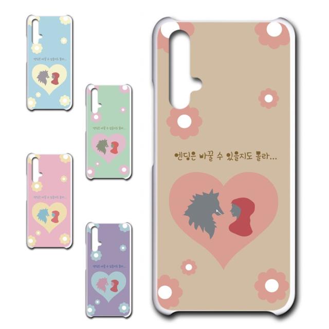 Huawei nova5T ケース 韓国 ハングル 可愛い ハート 赤ずきん オオカミ かわいい 童話 スマホケース ハードケース プリントケース 韓国語 韓流 ハングル文字 ファーウェイ ノバ5t ノヴァ5t のば5t nova5tケース