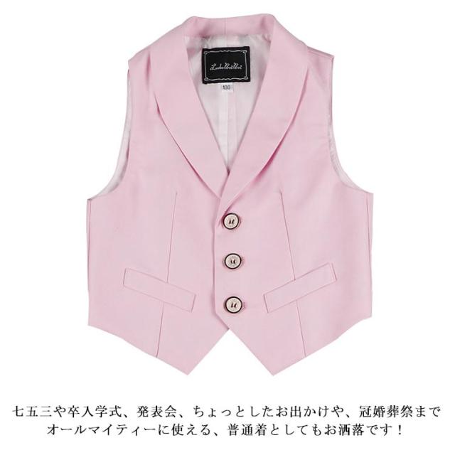 | 【90 100 110 120 130 140 150 160 170】 【9color】 入園・入学だけでなく結婚式や発表会など、華やかなシーンに活躍するフォーマルベスト。 別売のジャケットセットアップと合わせるとぐっと華やかでフォーマルな印象に。 通気性に優れた生地でさらっと快適、着心地や肌触の良い物を選びました。 七五三や卒入学式、発表会、ちょっとしたお出かけや、冠婚葬祭までオールマイティーに使える、普通着としてもお洒落です! | |