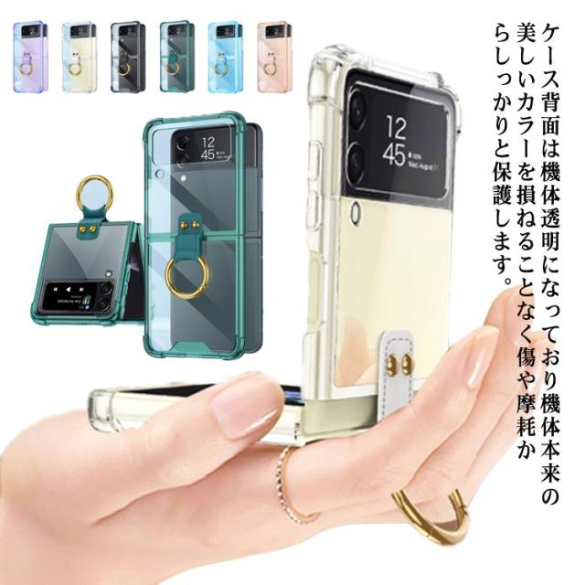 軽量 Z 韓国 Galaxy Galaxy Flip3ケース Flip 4 ケース 耐衝撃 スタンド機能 背面カバー スマホケース リング付き 透明 送料無料 シリコン Z 薄型 エアバッグ保護 保護 クリア