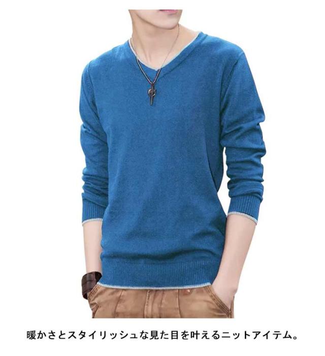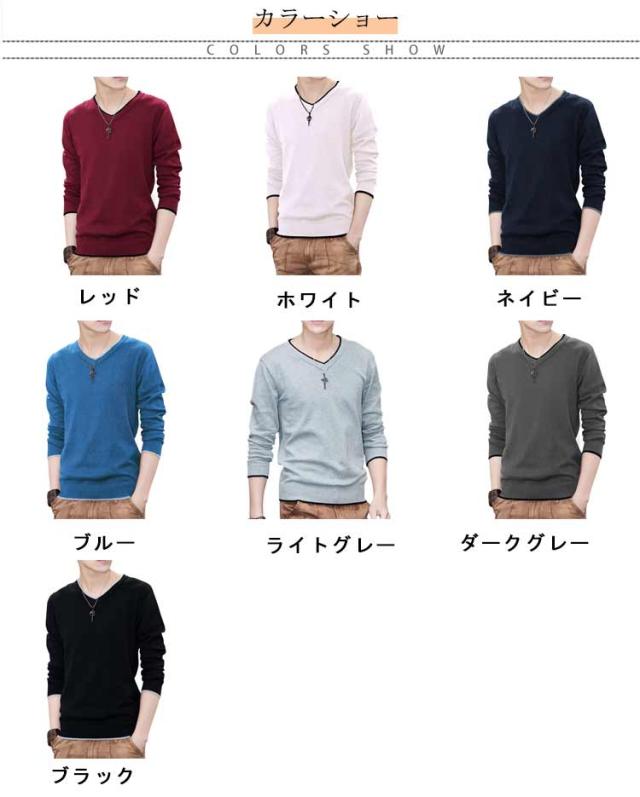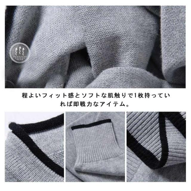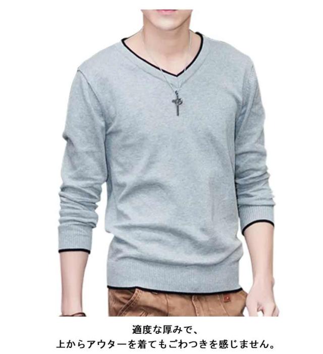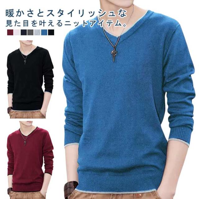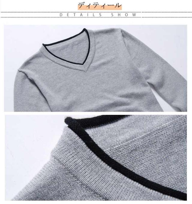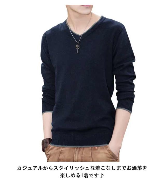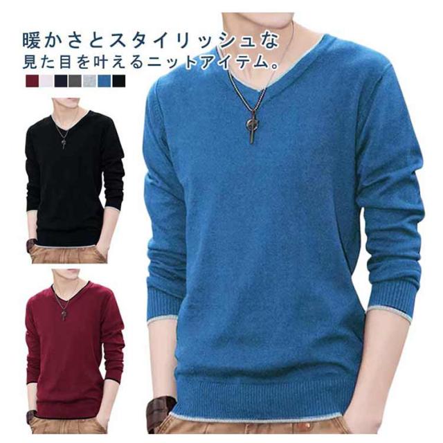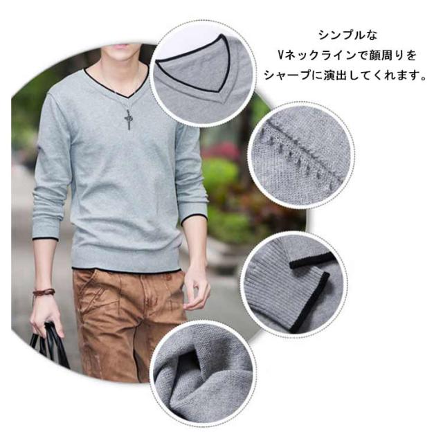 Vネック ニットセーター 薄手 無地 カジュアル 長袖 トップス オシャレ ライトニット メンズ 春秋 ビジネス 大きいサイズ 通勤 オフィス 紳士服 着痩せ 普段着 送料無料