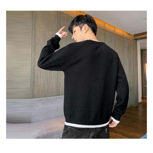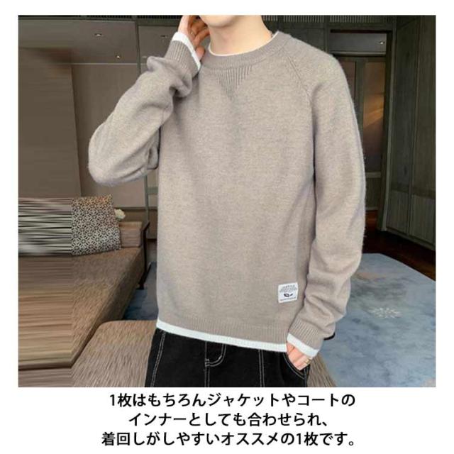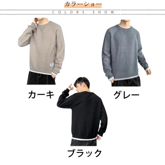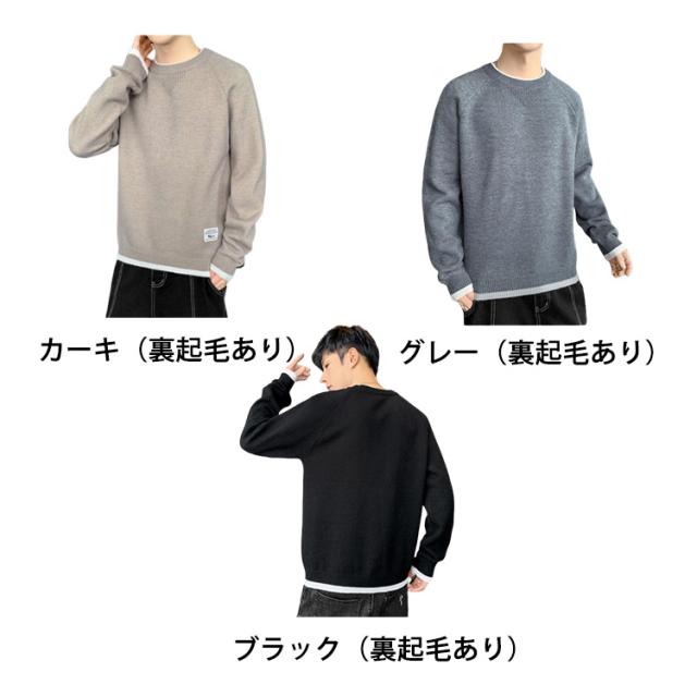【送料無料】セーター メンズ ニット 裏起毛 長袖 ゆったり レイヤード ニットセーター クルーネック シンプル おしゃれ あったか 韓国ファッション 冬服 秋 秋冬 メンズファッション