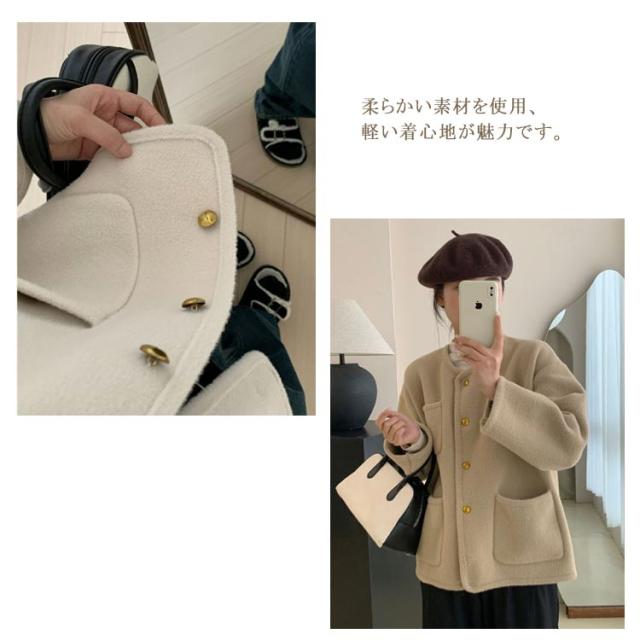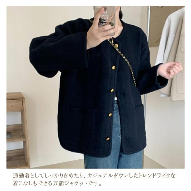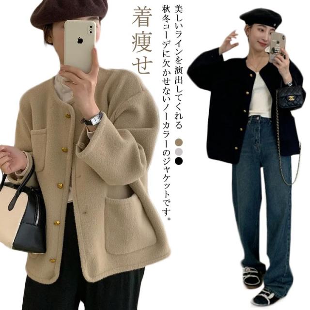 ノーカラージャケット レディース アウター ショート丈 コート カーディガン 羽織り フェミニン おしゃれ ゆったり オフィス 通勤 大人 卒園 卒業式 入園 入学式 参観日 秋 冬 春
