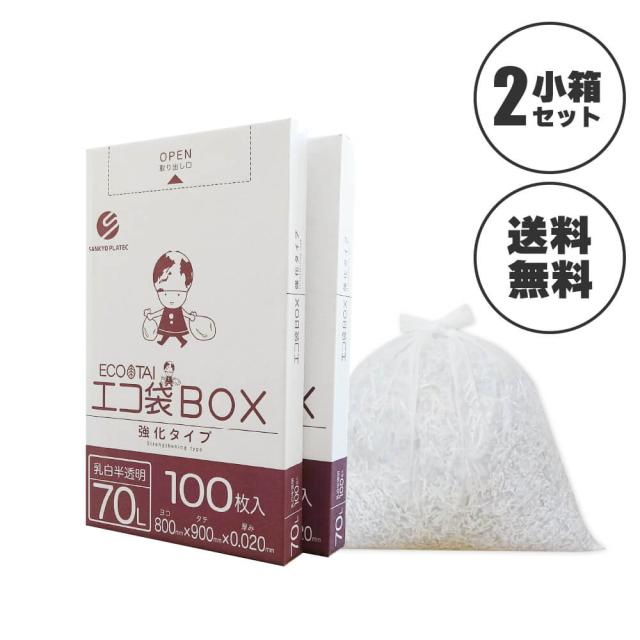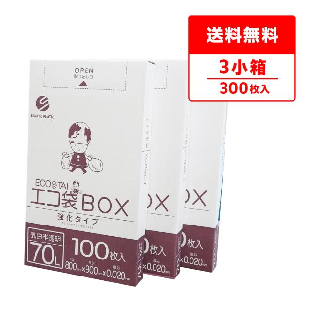 ※販売終了※ポリ袋 ゴミ袋 箱タイプ 70リットル 薄手 乳白半透明 80x90cm 0.020mm厚 100枚x3小箱 BX-740-3kobako /ごみ袋 70l ホワイト 送料無料
