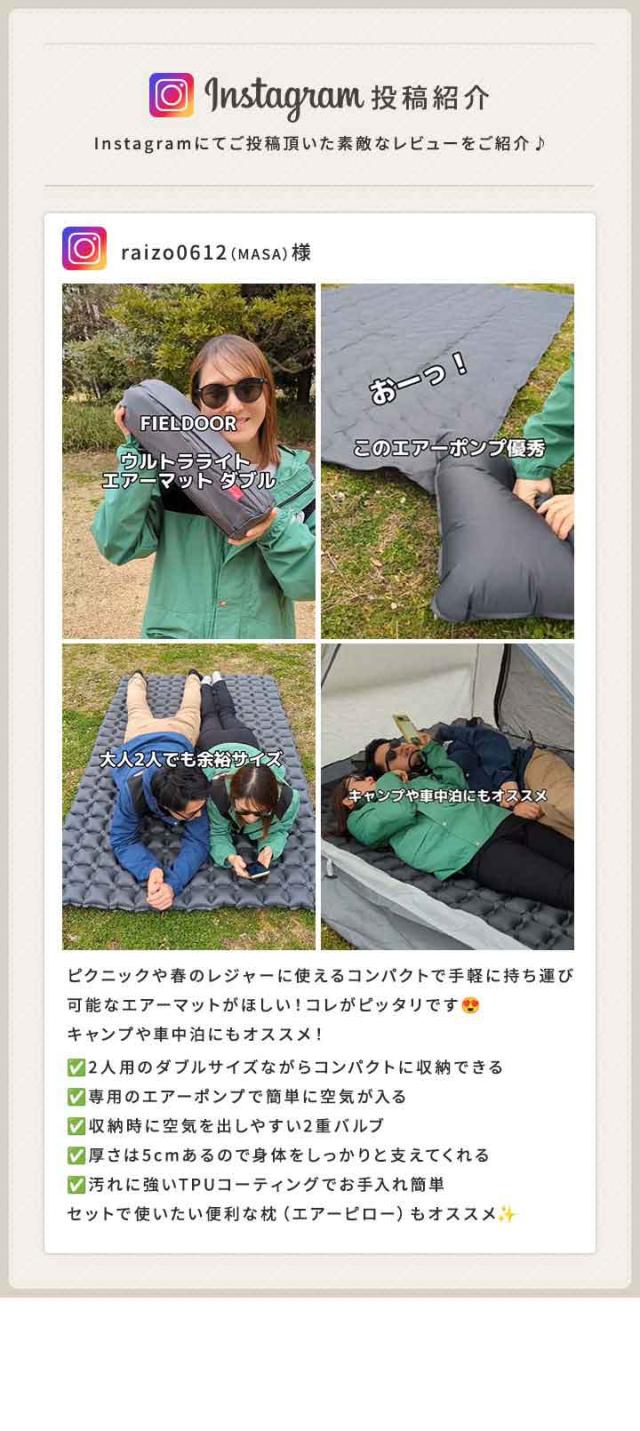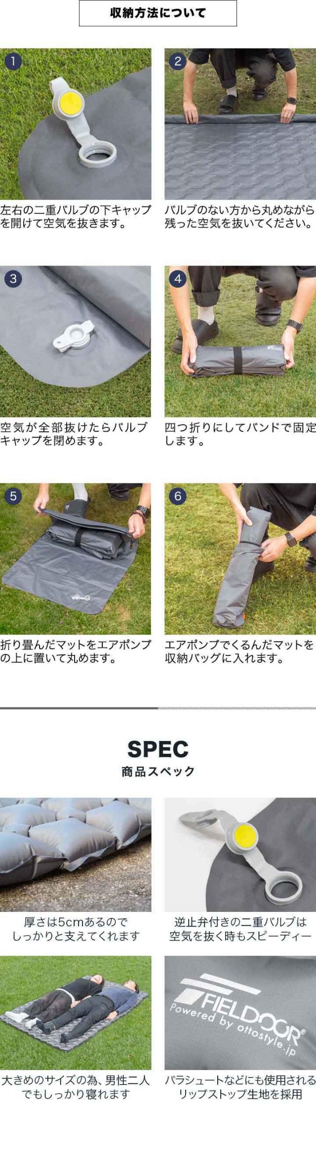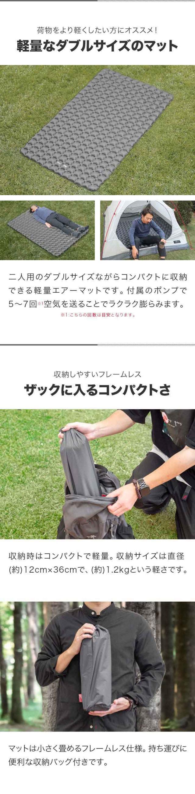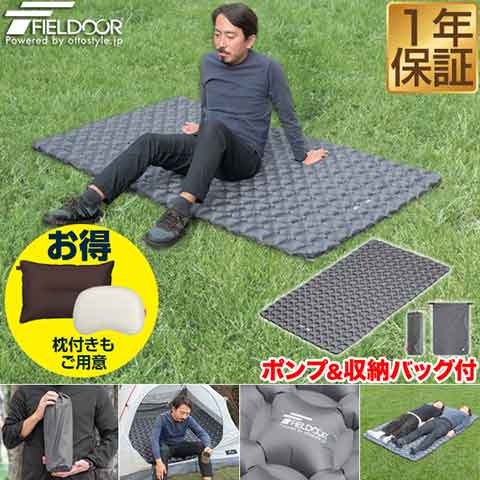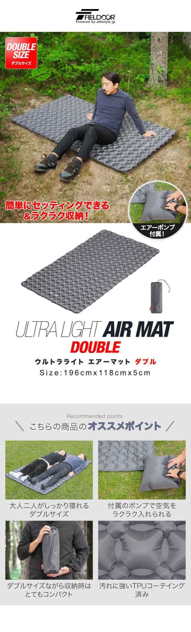 キャンプマット エアーマット 196cm×118cm ダブルサイズ D 厚さ5cm 超軽量 インフレータブル コンパクト ウルトラライト エアーベッド 収納 キャンプ キャンピングマット クッション シュラフ テント 登山 車中泊 FIELDOOR 1年保証 送料無料