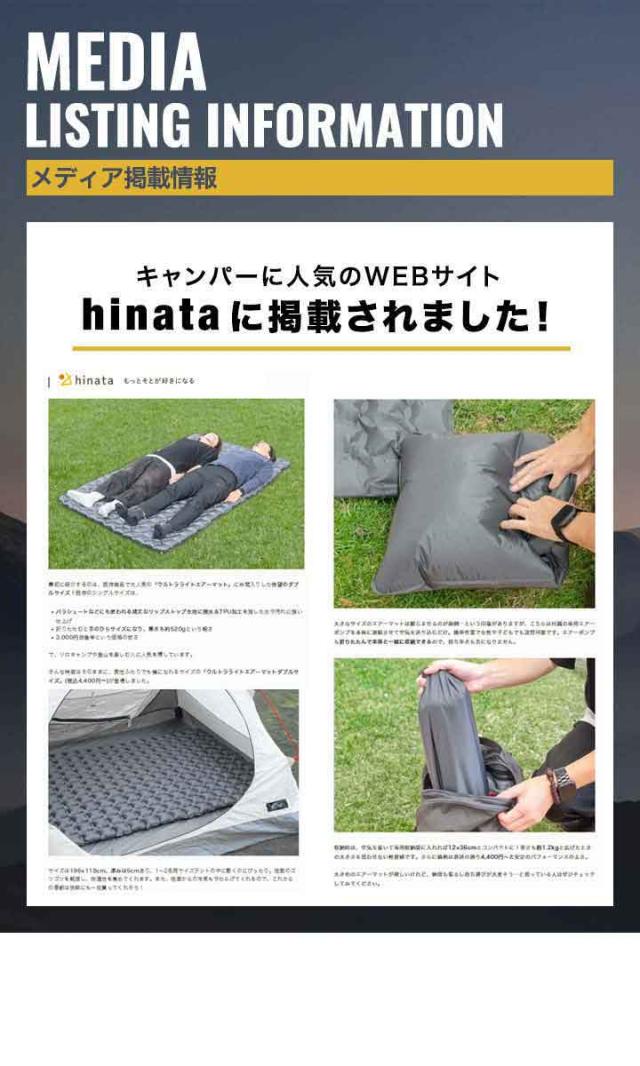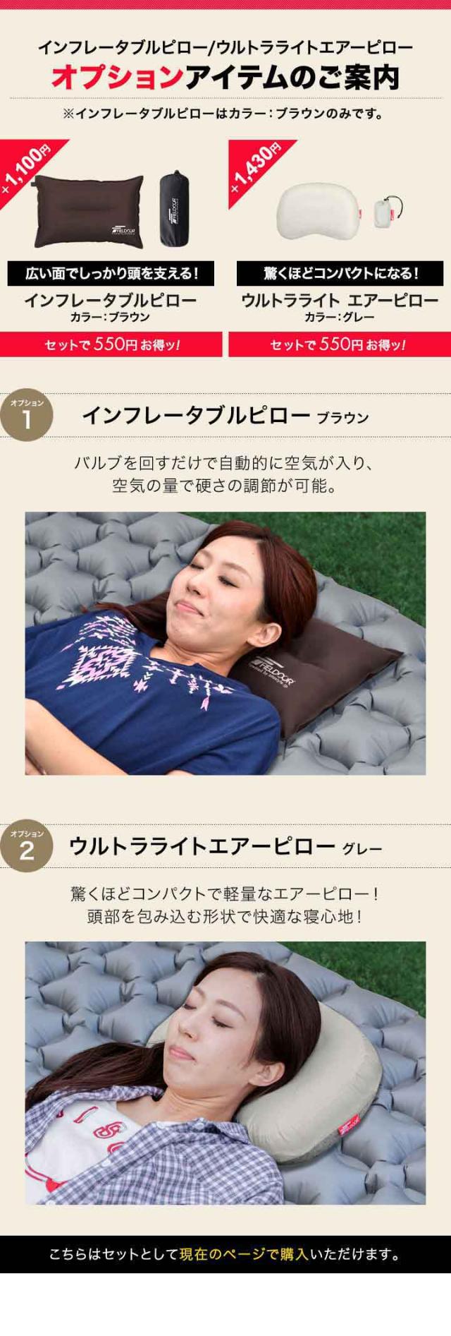 | ※[店舗管理用 URL]a07666 ※[品番]【エアーマット本体のみ:a07666】【インフレータブル枕付き(+1,100円):a03927】【ウルトラライト枕付き(+1,430円):a04049】 |