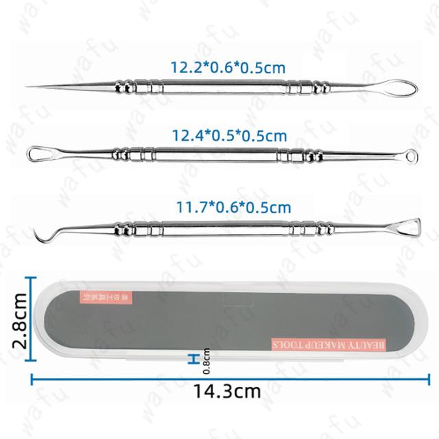 ●毛穴の角栓や、鼻周りの黒ずみ、黒ニキビ、白ニキビのケアに最適なプロ仕様のツール3本セットです。