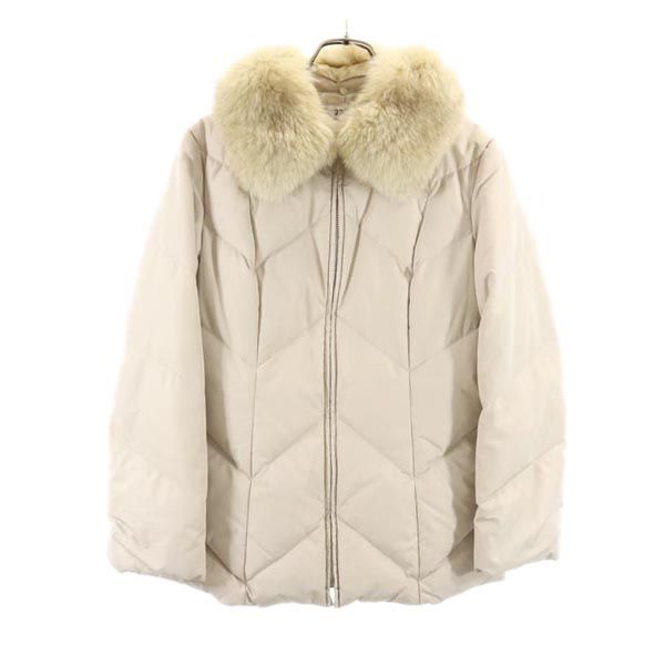 23区 長袖 ダウンジャケット 38 アイボリー 23ku 襟フォックスファー レディース