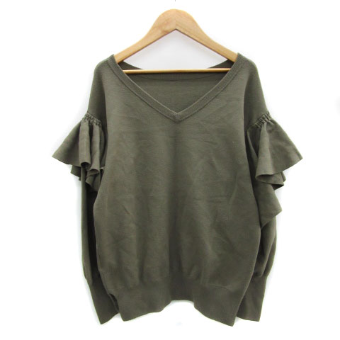 【中古】ケイシラハタ kei shirahata ニット カットソー 長袖 Vネック フリル F カーキ /MS33 レディース