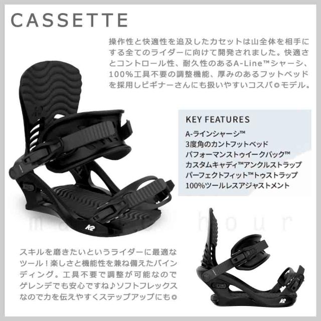 スノーボード ビンディング スノボー バインディング レディース K2 ケーツー CASSETTE ボード 金具 23-24 初心者 ソフトフレックス グラトリ 軽量 黒 白 グレー