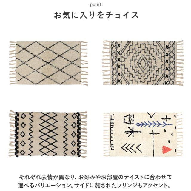 | 商品説明 | ・空間に馴染むナチュラルなデザイン!使い勝手ばっちりなマット(75×50cmサイズ)が新登場。 【異国のエッセンスをプラス】 ・モロッコの先住民の方たちの絨毯をイメージしたデザイン。サッと敷くだけでお部屋に異国の雰囲気が加わり、まるで旅をしている気分に♪ 【使い方いろいろ】 ・場所を選ばず使える75×50cmサイズ。玄関や窓際、寝室など色んなシーンで活躍。 【お手入れラクラク】 ・汚れが気になったら、自宅で手洗いOK。いつも清潔に保てるのが嬉しい! 【お気に入りをチョイス】 ・それぞれ表情が異なり、お好みやお部屋のテイストに合わせて選べるバリエーション。サイドに施されたフリンジもアクセント。 |