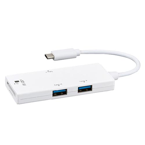 ナカバヤシ COM-C3SD073-W ホワイト USB3.2Gen1 Type-C 3ポート コンボハブ SDカードリーダー・ライター付