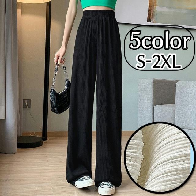 ロングパンツ ワイドパンツ フレアパンツ 細プリーツ加工 レディース 婦人服 ボトムス 長ズボン ウエストゴム 薄手 ドレープ