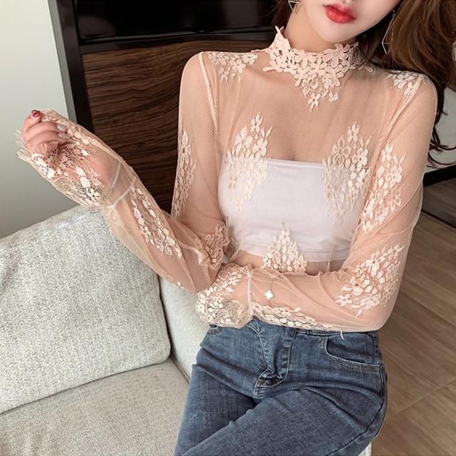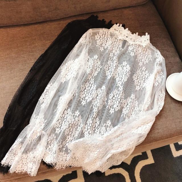 シースルーブラウス 花柄総レーストップス