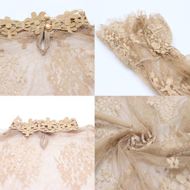 繊細な花柄レースが魅力のフリンジ付きフレアスリーブシースルーブラウス
