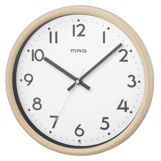 木目調のフレームが、どんなお部屋にもマッチ。MAG 電波壁掛け時計 トルテが登場。【MAGとは】「あなたの暮らしに、そっと寄り添う」をコンセプトに、1982年から40年以上時計を中心にモノ作りを続けてきた歴史を持つブランド。【どんなお部屋にもマッチ】北欧、ナチュラルテイスト、和室、どのようなお部屋タイプにもあわせやすいデザイン。木目調のフレームとシンプルな文字盤で時間が見やすい◎【夜間は静かに】夜の10時から朝の6時までは秒針がストップする機能を搭載。寝室での使用も安心。(昼間はコチコチと1秒ごとに時を刻みます)【時刻を自動修正してくれる】電波時計タイプなので、時刻を自動修正してくれる。いつも正確な時間を確認できる。【柔らかいフォント】丸みのある柔らかいフォントが、優しい雰囲気を演出。毎日、目にするものだから、ナチュラルな作りなのも嬉しいポイント。【ちょうど良い大きさ】リビングや寝室、オフィスなどで使いやすい、直径約27.5cmのちょうど良い大きさ。場所を選ばずに使える。※単3電池×1使用。(別売です)