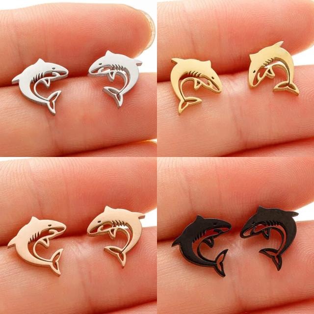 鮫をモチーフにしたかっこいいステンレス素材のスタッドピアス。